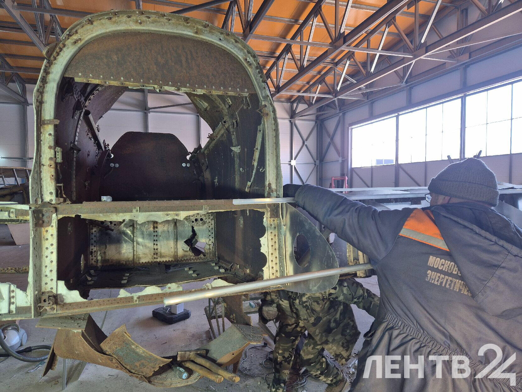 Напомним, бронекапсула машины была поднята поисковиками около семи лет назад в Большом Заречье, и сейчас самолет приводят в первозданный вид. В настоящее время специалисты уже пристыковали левое крыло, смонтировали обшивку хвостовой части фюзеляжа и ведут усиление центроплана крыла. Аналогичные работы предстоят по правому борту.