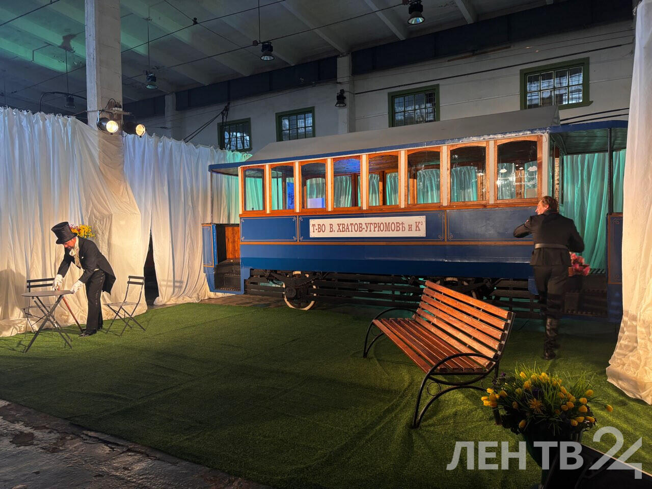 В экспозиционно-выставочном комплексе Горэлектротранса состоялась премьера спектакля. Среди музейных трамваев старейшего парка артисты представили журналистам водевиль «Дитя кулис».