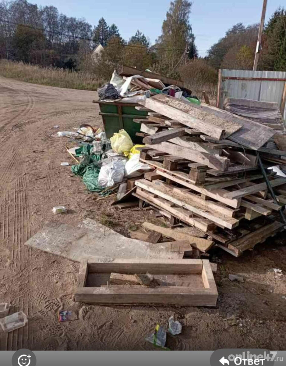 Выяснилось, что контейнерная площадка завалена строительным мусором. Региональный оператор неоднократно составлял акты с фотофиксацией и направлял обращения в администрацию Мгинского поселения, но реакции не было. Сейчас часть отходов вывезена, остальное должна убрать администрация поселения.