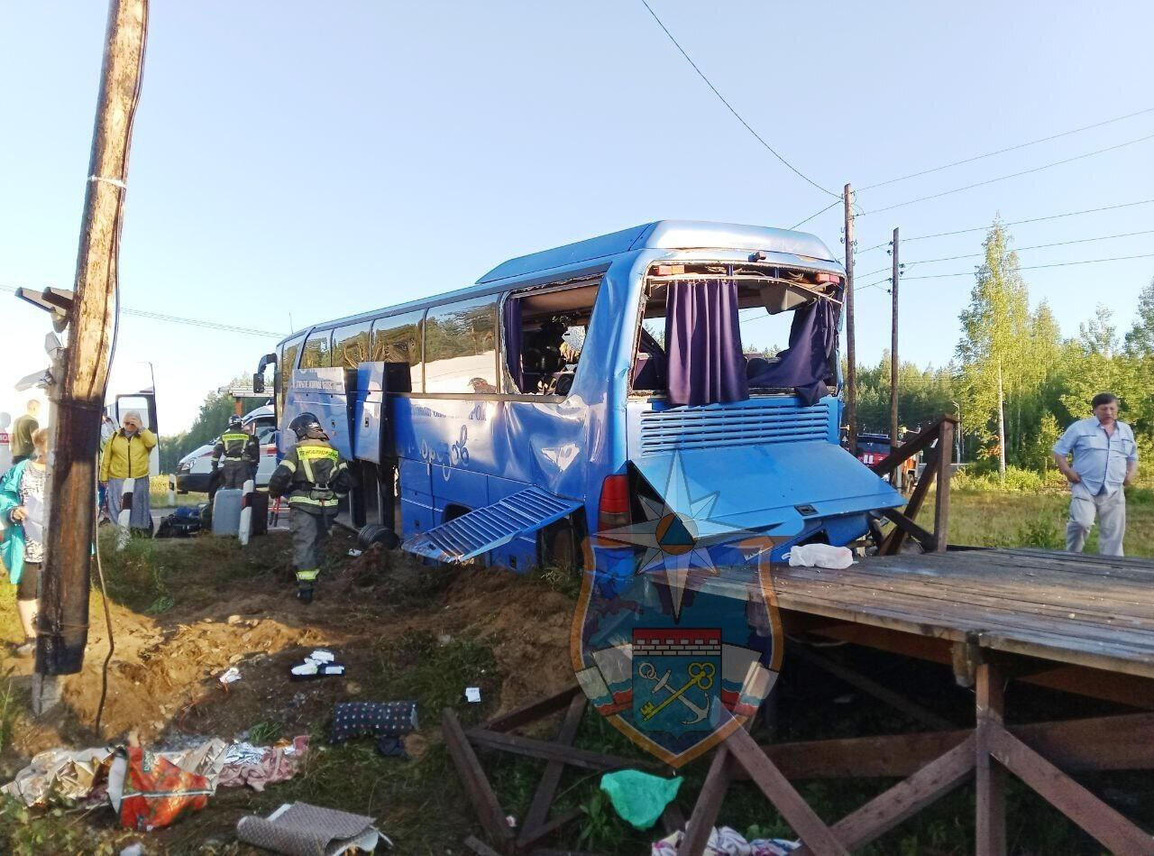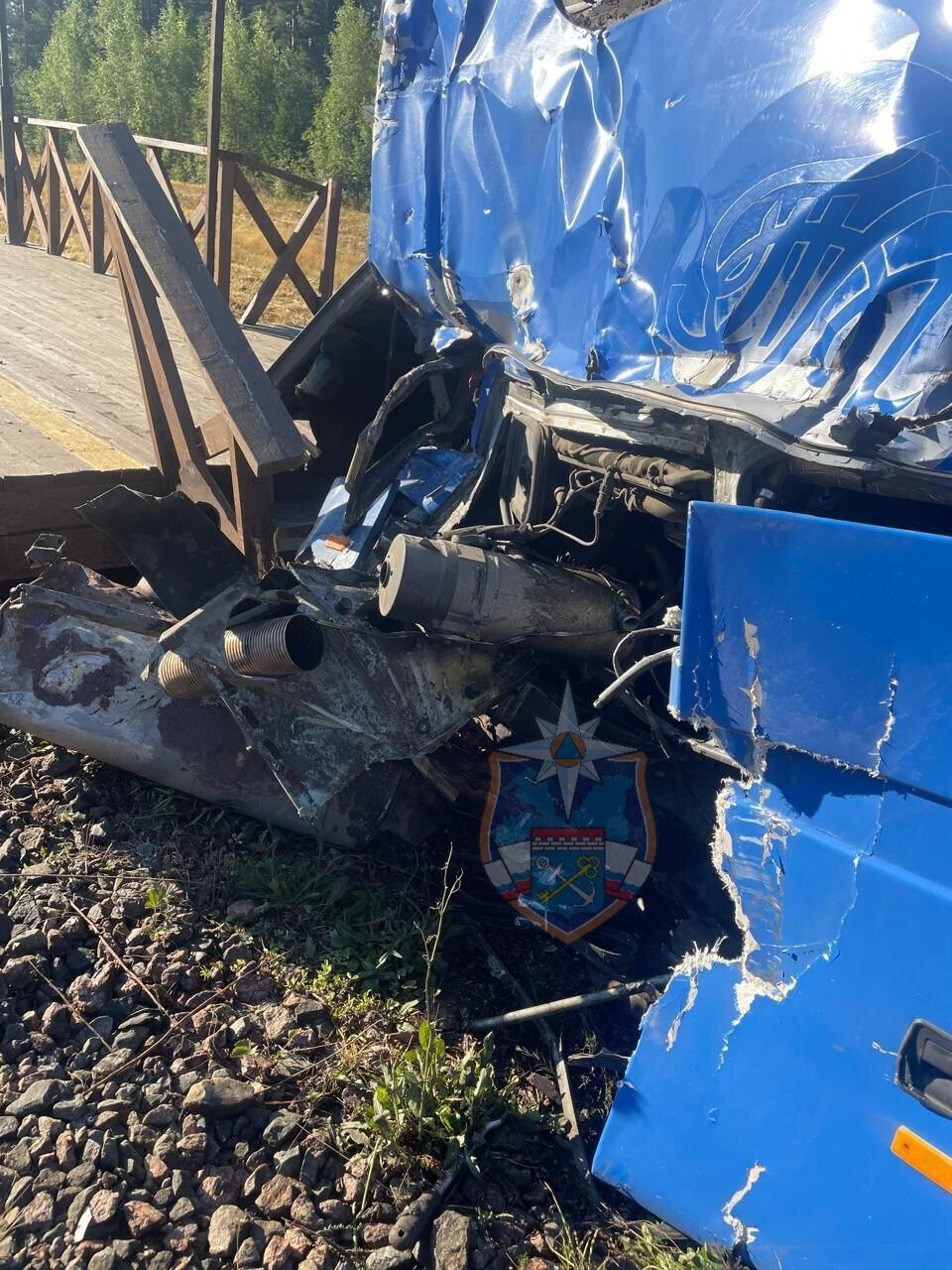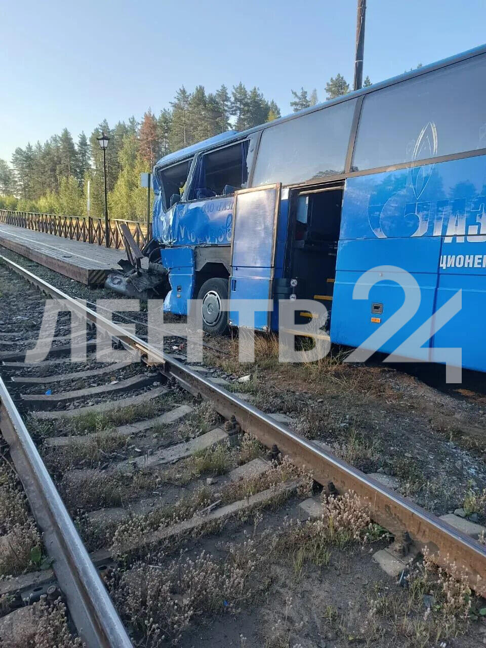 Туристический автобус столкнулся с поездом в Лодейнопольском районе
