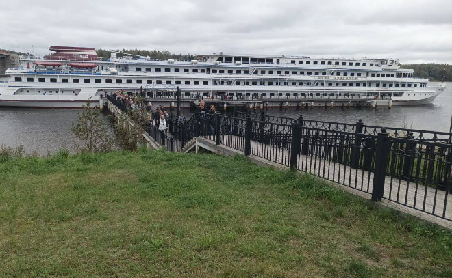 У музея «Прорыв блокады Ленинграда» встретили первый круизный лайнер