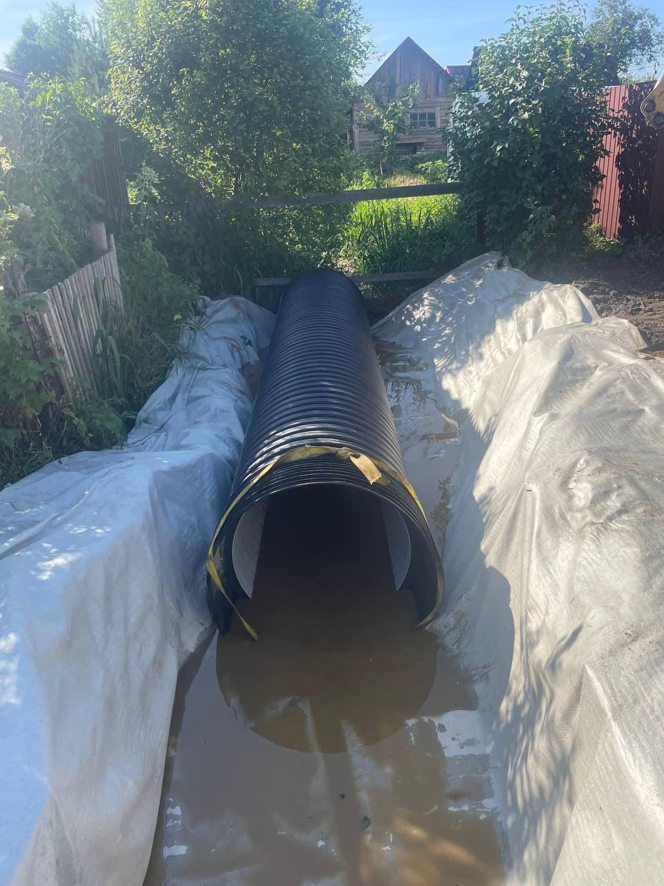 Местная администрация сообщила, что ремонтные работы в этом месте уже начаты, а после прямой линии появились и фотографии, подтверждающие это. В частности, сейчас меняют трубу, по которой вода отводится от участков.