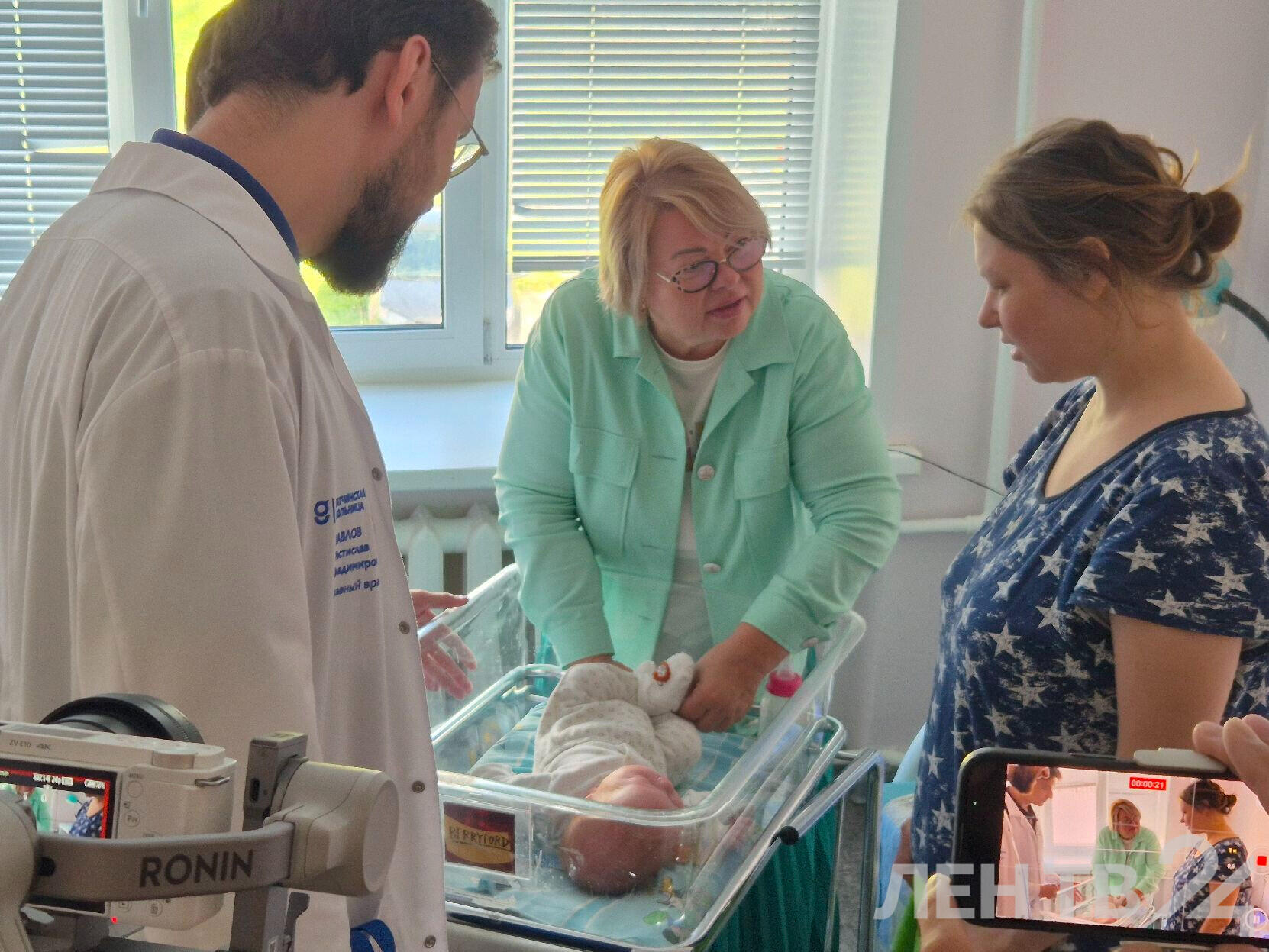 В ходе визита Татьяне Толстовой показали фирменные носочки Гатчинской клиники, которые дарят маленьким пациентам. Уполномоченный лично перелала одну пару носочков маме с новорождённым ребёнком.