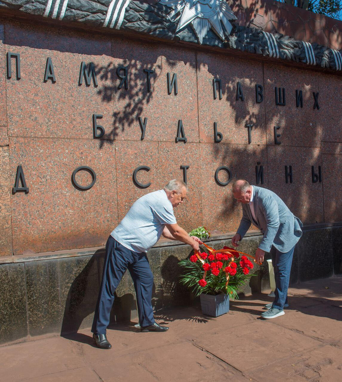 В этот день руководство Енакиевского металлургического завода во главе с управляющим филиалом и председателем профкома возложило цветы к мемориалу Вечный огонь, а также к заводским памятникам погибшим в годы Великой Отечественной войны и сотрудникам, отдавшим жизни в ходе СВО.