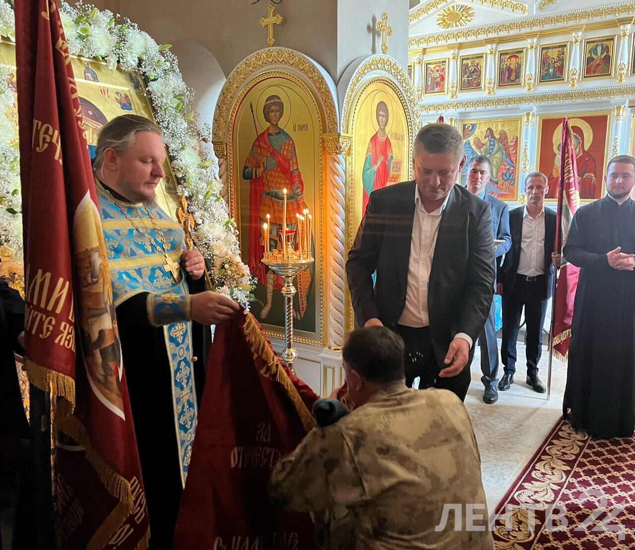 В среду, 10 сентября, во Всеволожском районе в деревне Хязельки на территории Афонского скита «Древне-Русская Лавра» прошло освящение знамен-хоругвей для участников специальной военной операции. Среди них — знамя Дмитрия Донского, которое будет передано бойцам разных подразделений. Церемония началась с освящения знамен в храме Успения Пресвятой Богородицы, после чего состоялся крестный ход.