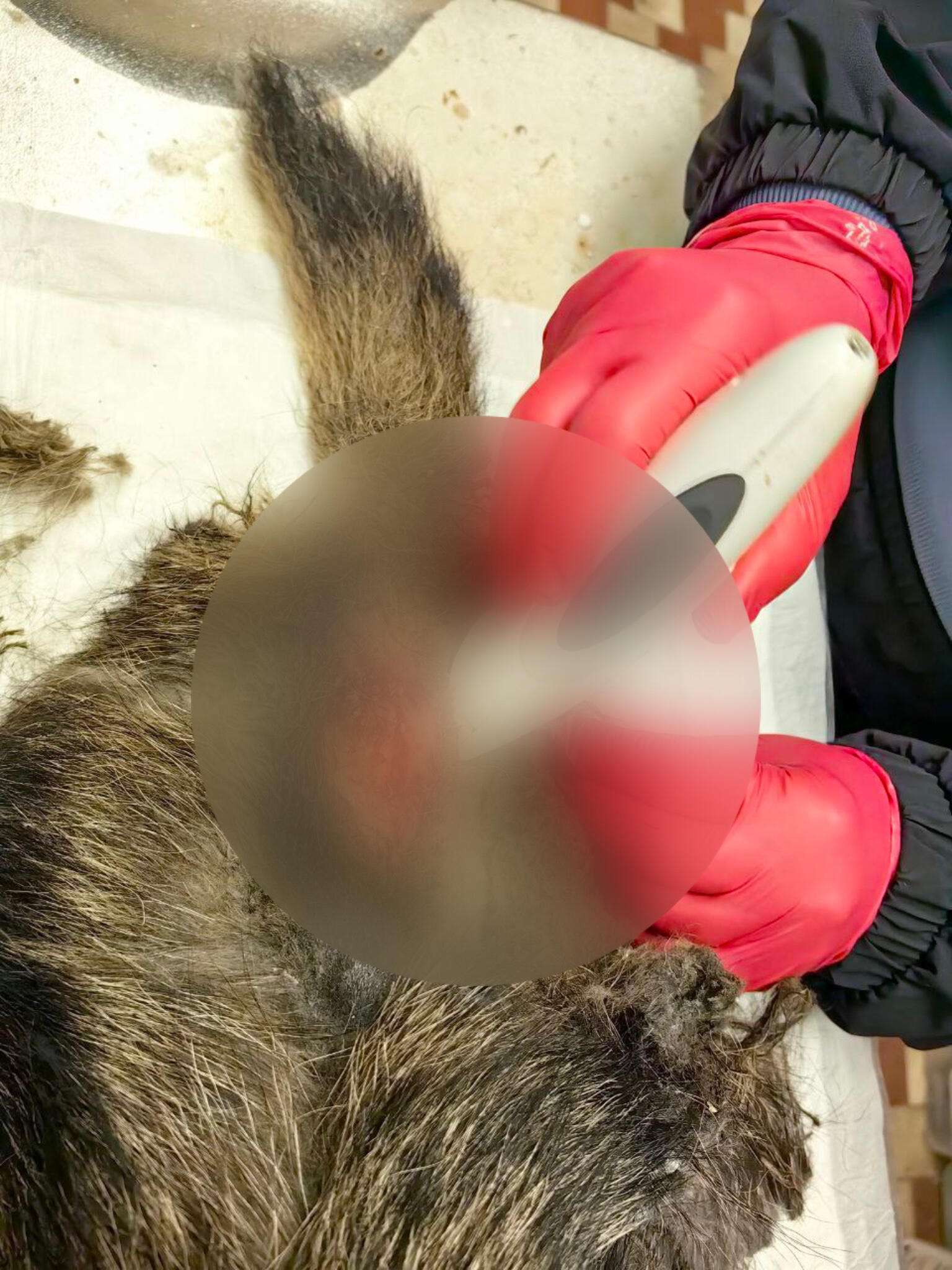 Животное попало сюда в тяжелом состоянии с глубокой раной, полной опарышей.
