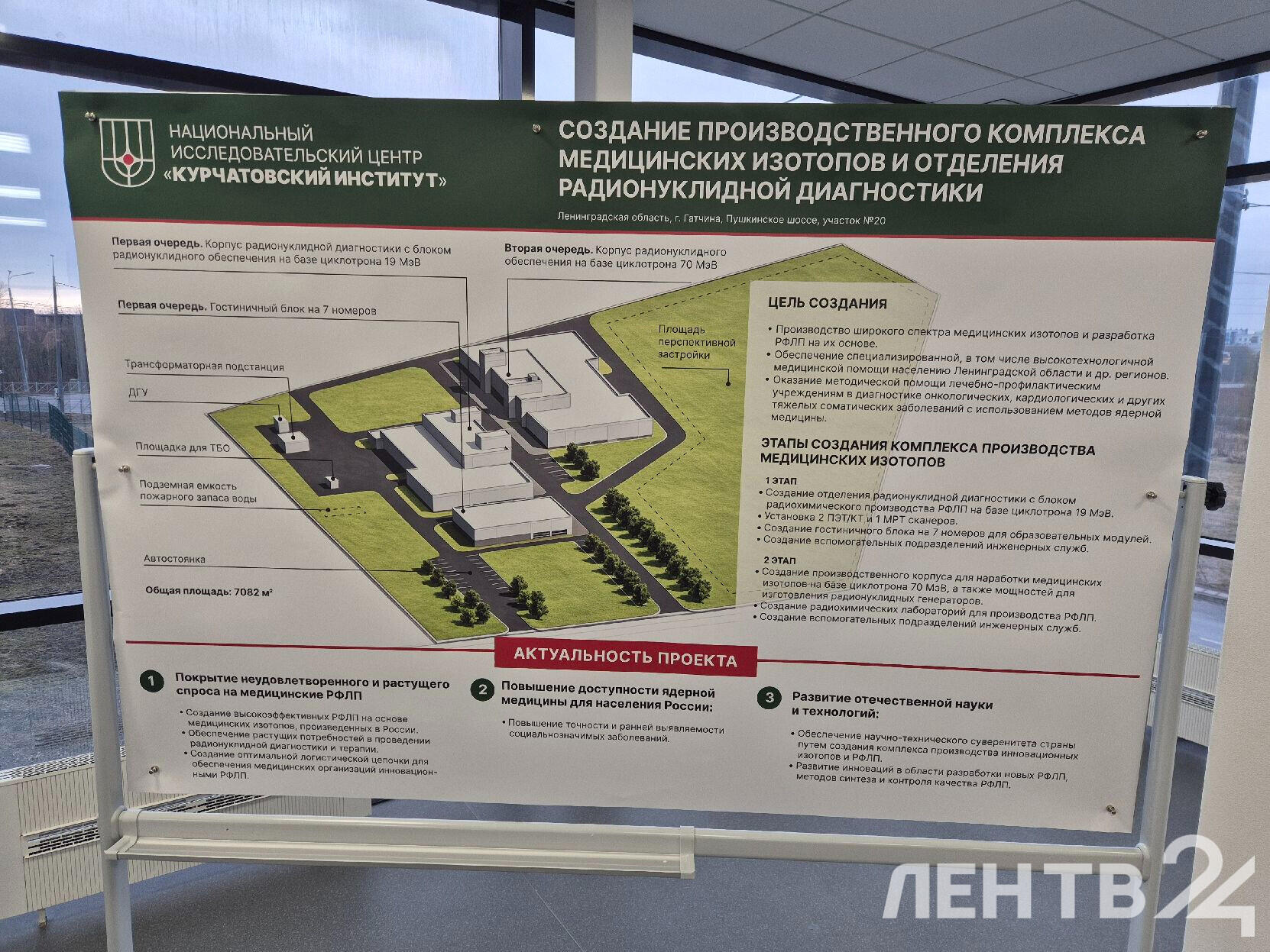 В состав комплекса войдут мощности по производству медицинских изотопов и готовых лекарственных препаратов, а также отделение радионуклидной диагностики. Выпускаемые препараты и методы диагностики будут востребованы не только в медицинских учреждениях Ленинградской области, но и в онкологических клиниках по всей стране.