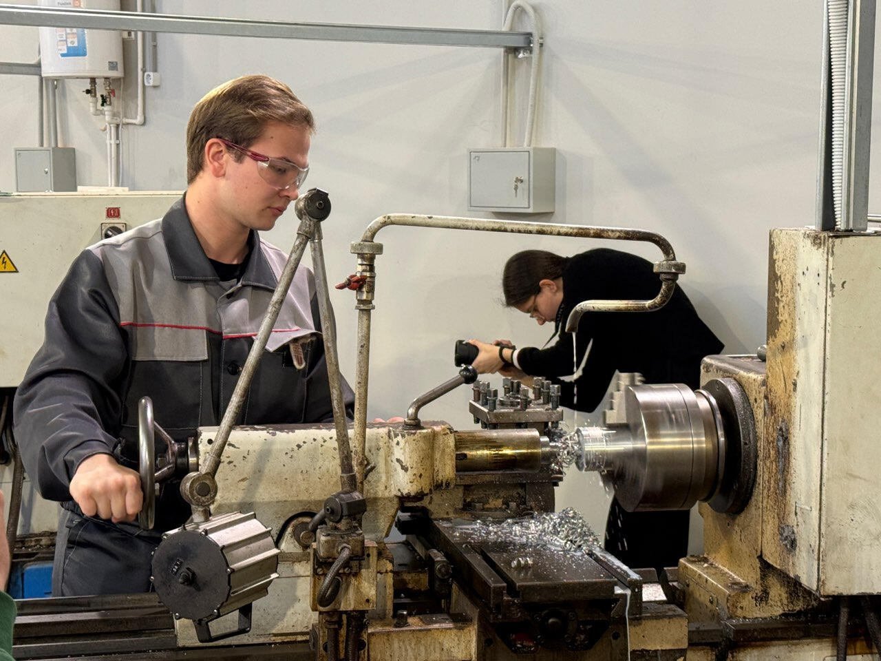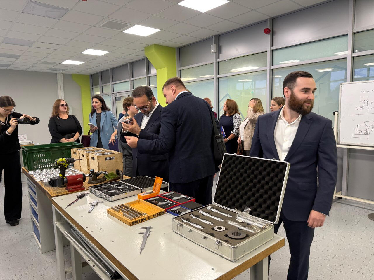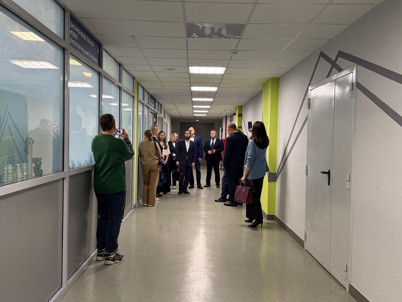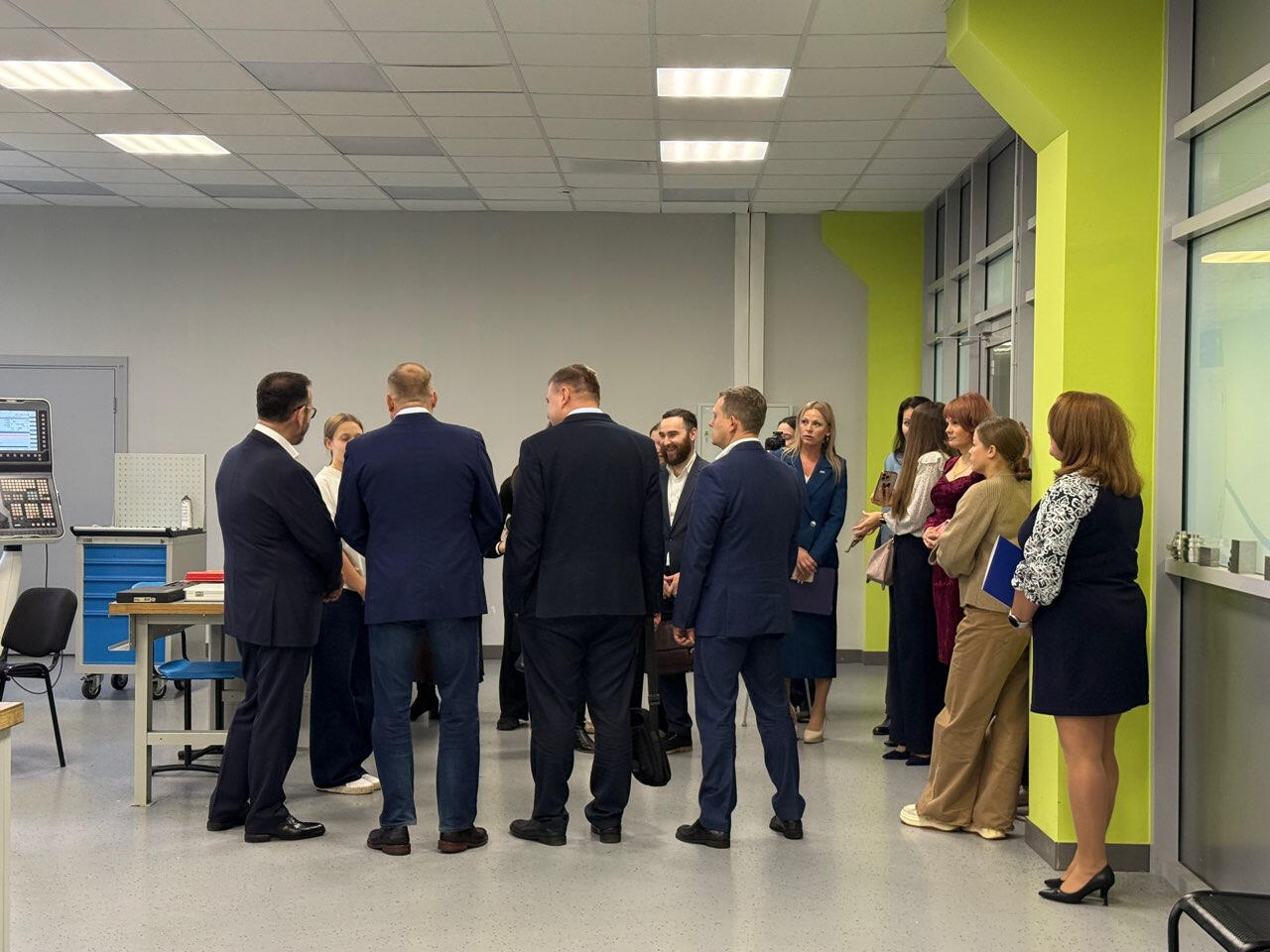 Перед началом торжественной церемонии делегации из почетных гостей провели небольшую экскурсию. Начали с учебно-производственного комплекса технологии машиностроения, где можно было увидеть работу на станках ЧПУ. Гостям удалось пообщаться с ребятами, которые уже умеют работать с непростым оборудованием. Продемонстрировали им и другие технологические процессы.
