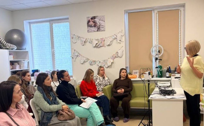 Перед участницами школы для беременных выступила эксперт — специалист Всеволожского отдела ЗАГС Наталья Попова. Она подробно разъяснила алгоритм действий для государственной регистрации факта рождения ребенка, акцентировав внимание на ключевых документах и сроках. Особый интерес вызвала вторая часть выступления, посвященная обзору действующих программ поддержки семей — как на уровне федерального законодательства, так и в рамках уникальных проектов Ленинградской области.