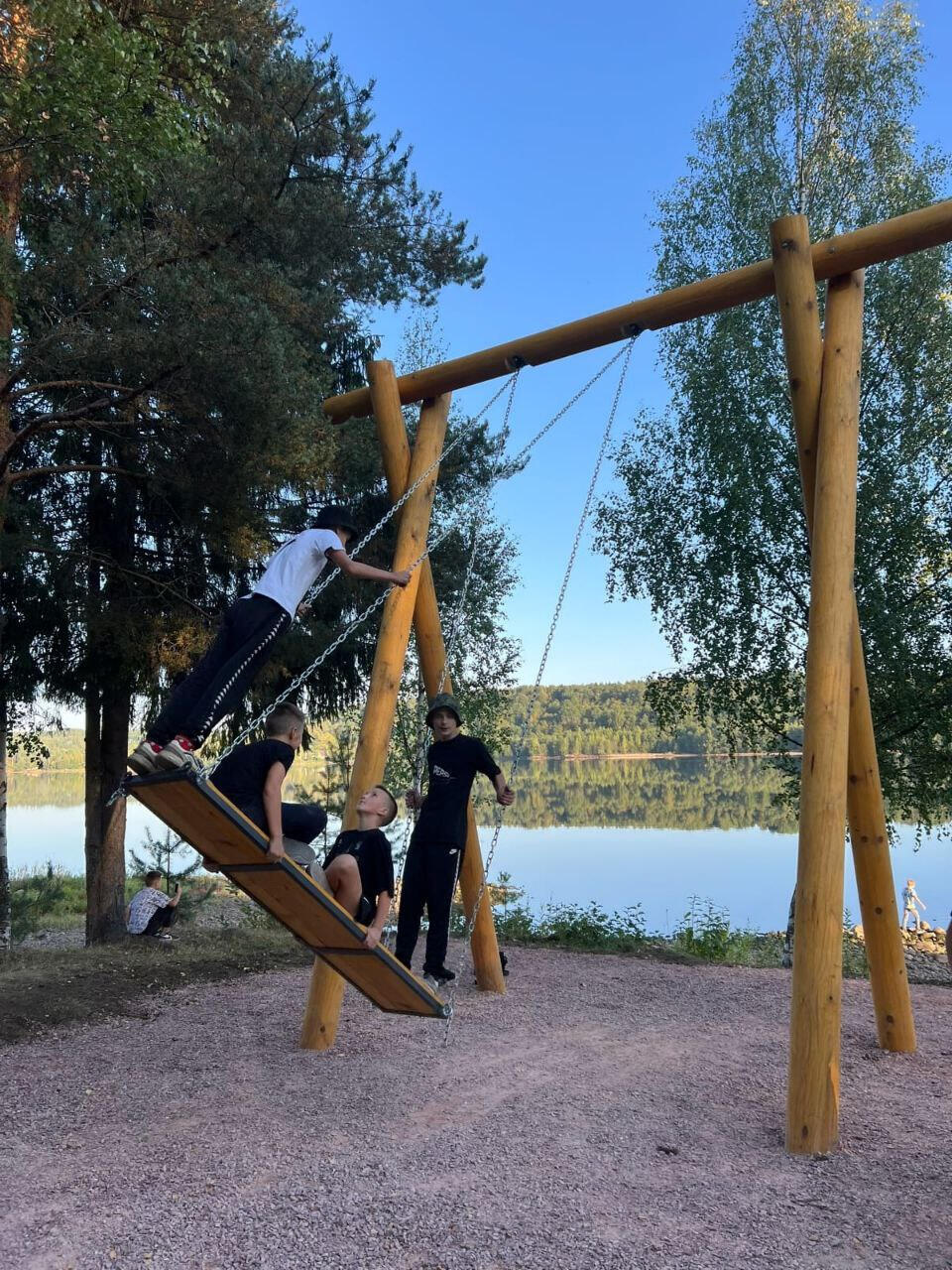 В Юкках установили детскую площадку с горкой и батутами, а взрослых ждут вращающиеся диваны и городские качели. Не забыли и о зелени: деревья, росшие здесь раньше, сохранили и высадили новые растения.