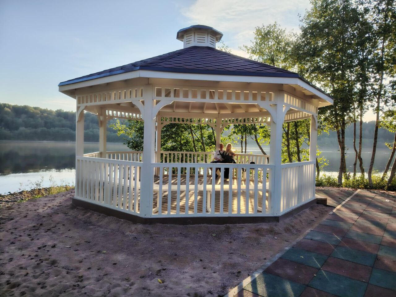 В Никольском привели в порядок прибрежную территорию у Дома культуры. Теперь там можно проводить самые разные мероприятия на открытом воздухе, для этого установили сцену и амфитеатр. В остальное время обновленное общественное пространство идеально подходит для прогулок и отдыха всей семьей: появились качели, игровая площадка для детей и арт-объект.