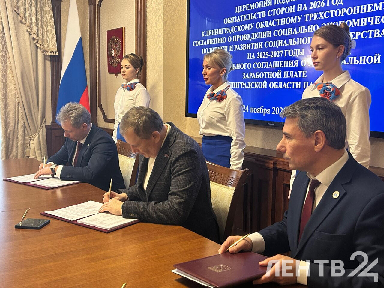 Документ утвердили своими подписями губернатор региона Александр Дрозденко, председатель Союза «Межрегиональное Санкт-Петербурга и Ленинградской области объединение организаций профсоюзов «Ленинградская Федерация Профсоюзов» Александр Голубев и президент Союза промышленников и президент регионального объединения работодателей «Союз промышленников и предпринимателей Ленобласти» Александр Габитов