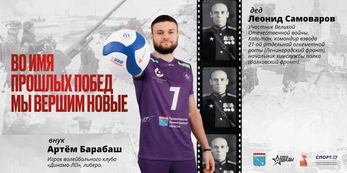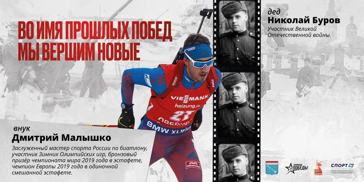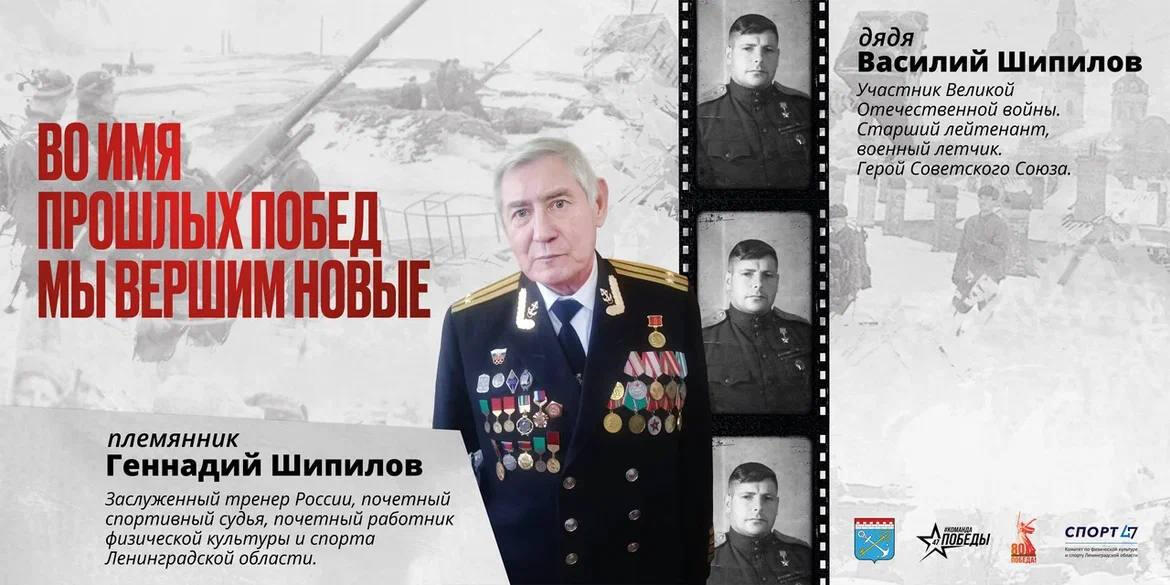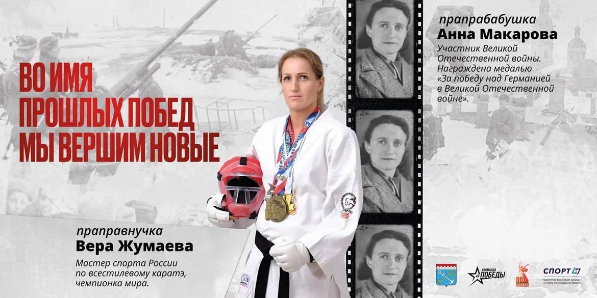 В преддверии празднования 80-летия Победы в 12 районах Ленобласти установили билборды с фотографиями спортсменов и их предков — участников Великой Отечественной войны. Рядом с достижениями атлетов — истории подвигов их дедов и прадедов. Это боевые пути, героизм в тылу, плен и дорога до Берлина.