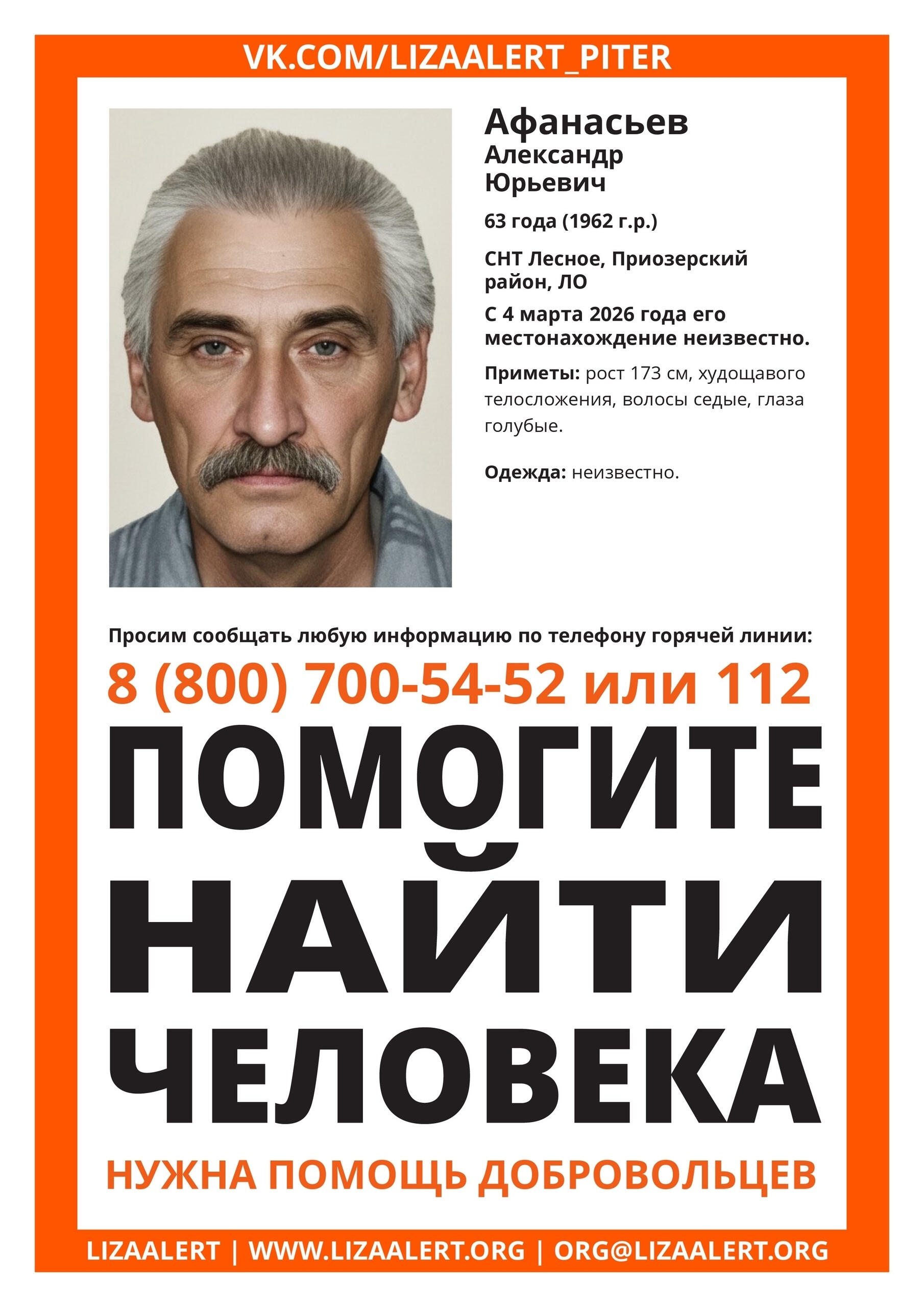 Афанасьева. Утром 4 марта житель Ленобласти ушел из дома в СНТ «Лесное» и с той поры о
