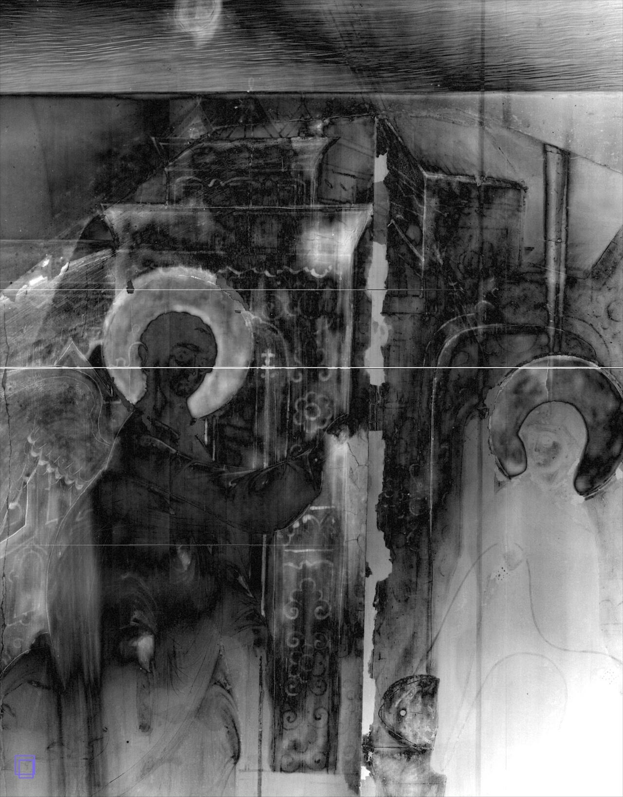 В дальнейшем раскрытие будет продолжено на фигуру архангела, но уже сейчас проведенные визуальные исследования и выполненные микрошурфы дают надежду на удовлетворительное состояние авторской живописи, рассказал Дмитрий Пейчев.