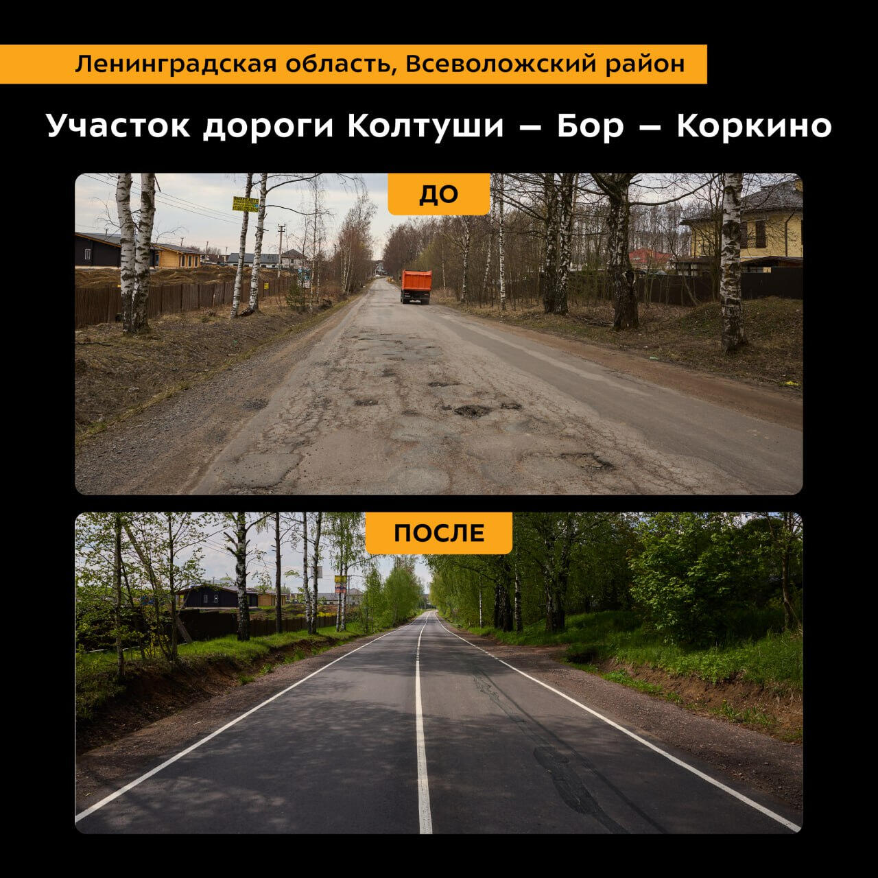 Работы прошли в рамках нацпроекта «Инфраструктура для жизни». В дорожном комитете отметили, что ремонт затронул Колтуши и три деревни – Хязельки, Кирполье и Коркино.