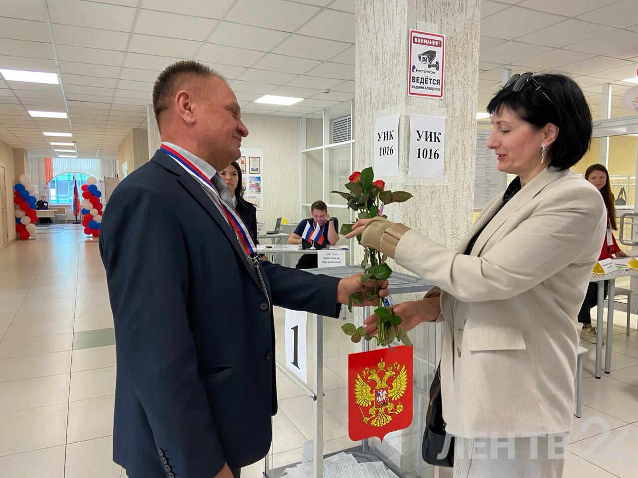 В Мурино голосующим на выборах губернатора Ленобласти дарят цветы