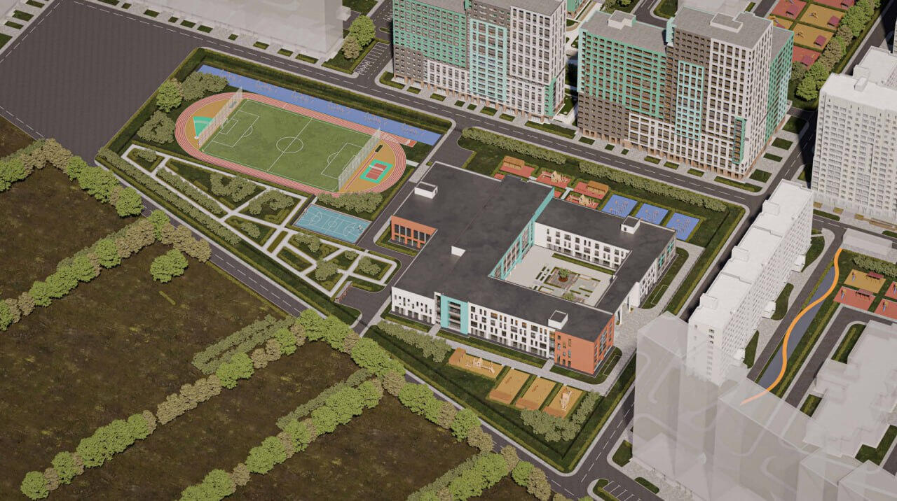 В одном здании будут располагаться и начальная, и основная, и старшая школы. На фасаде решили разместить изображение маяка, он будет символизировать устойчивость, направление и общность. Учебное заведение должно стать архитектурным ориентиром всей окружающей территории.