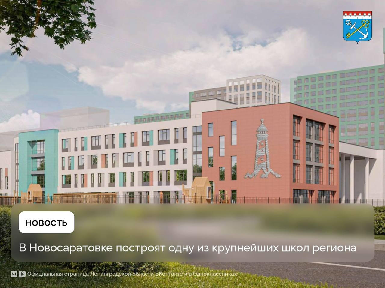 Госстройнадзор Ленинградской области выдал разрешение на строительство новой школы в Новосаратовке на 1375 мест. Учебное заведение объединит начальную, основную и старшую школу и станет архитектурным ориентиром для всей территории. Символом образовательного учреждения выбран маяк, который отражает устойчивость, направление и общность.