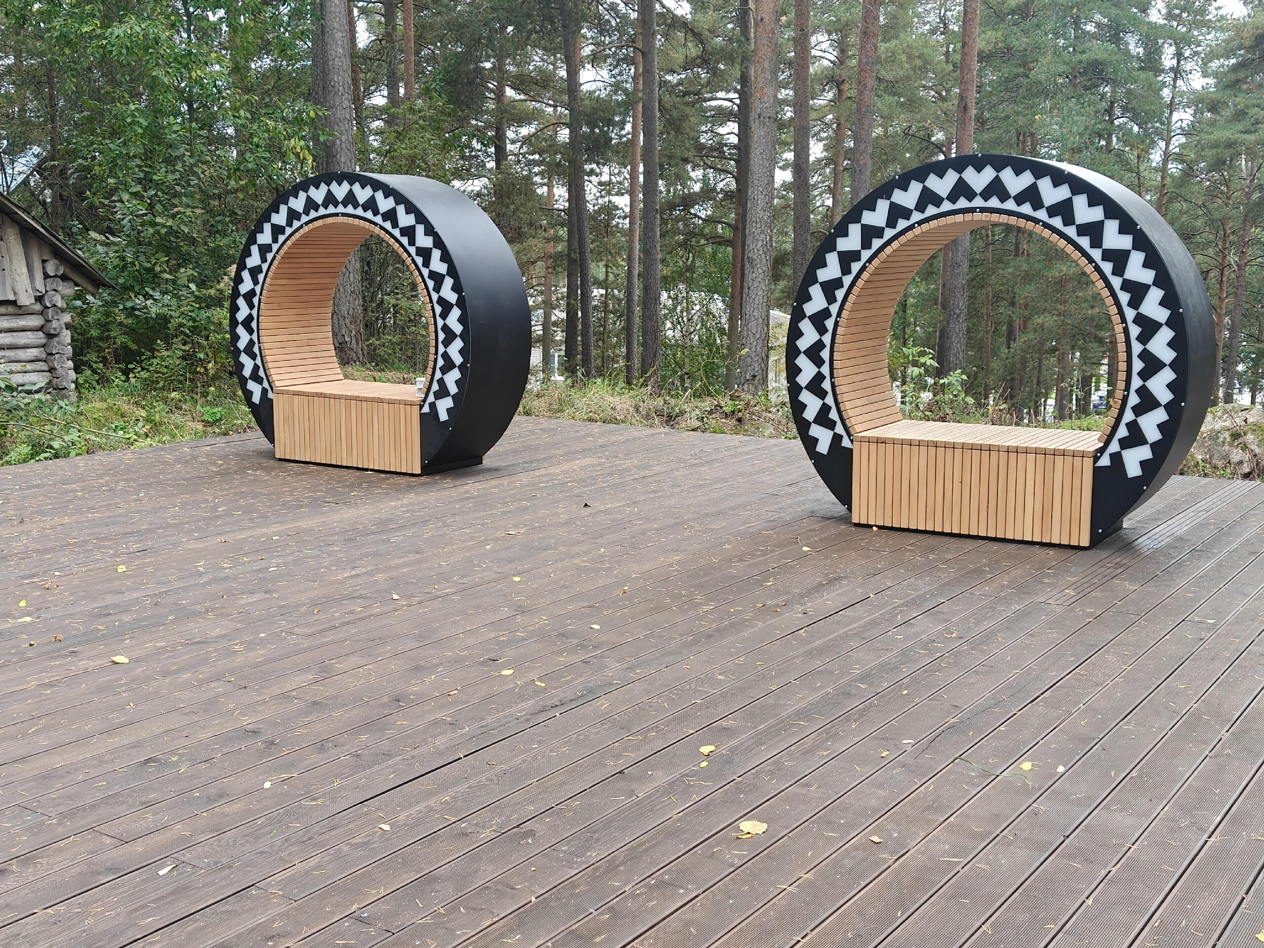 На территории сделали смотровую площадку, с которой можно любоваться живописной панорамой окрестностей. Дизайн-проект подготовил Центр компетенций Ленинградской области.