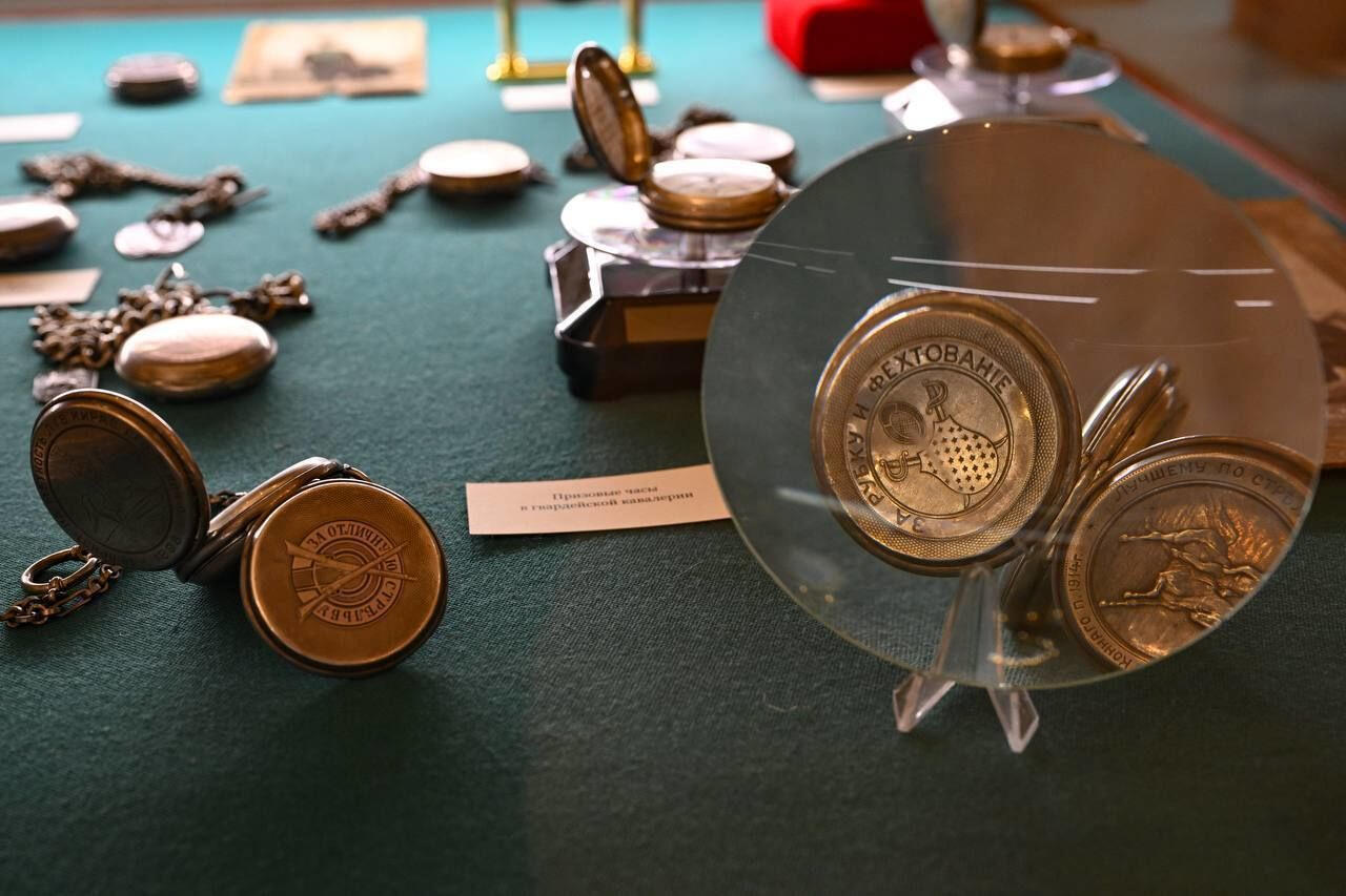 Как рассказала заведующая музеем РГО Софья Касым, идея выставки началась с коллекции императорских часов, но вскоре была расширена. Одним из центральных экспонатов станут личные вещи военного министра времён Николая II Алексея Куропаткина, включая парадный китель, наградную икону, карманные часы и фотоаппарат, который, по предположениям, ему подарил Николай II. Кроме этого, посетителям покажут письма, ларнеты, компасы и другие артефакты офицерского быта XIX – начала XX века.