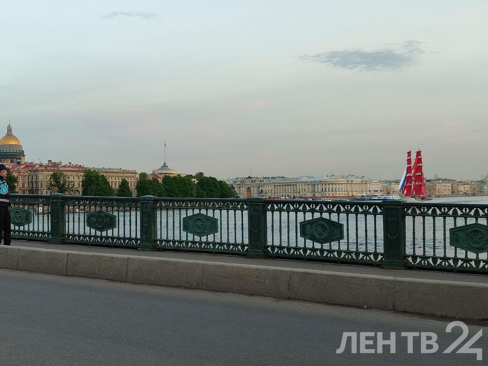 В Северной столице пятничным вечером 11 июня прошла первая репетиция шоу «Алые паруса». По Неве прошел бриг «Россия» под алыми парусами. Для этого изменили расписание разводки трех мостов: Благовещенский, Дворцовый и Троицкий развели раньше обычного.