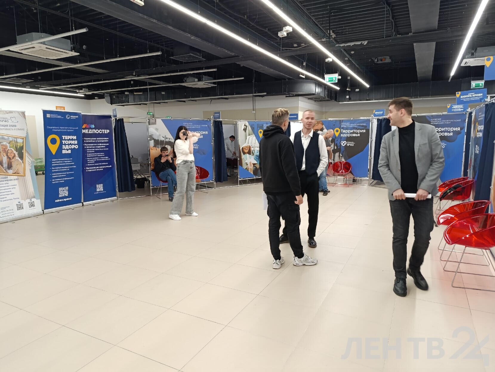 Проект «Территория здоровья» начал работать в Санкт-Петербурге. Медосмотр в торговом центре организует петербургская городская поликлиника № 40. В импровизированных кабинетах принимают офтальмолог, дерматолог, врач УЗИ и терапевт. Первыми посетителями стали участники группы «Пролетарское танго».