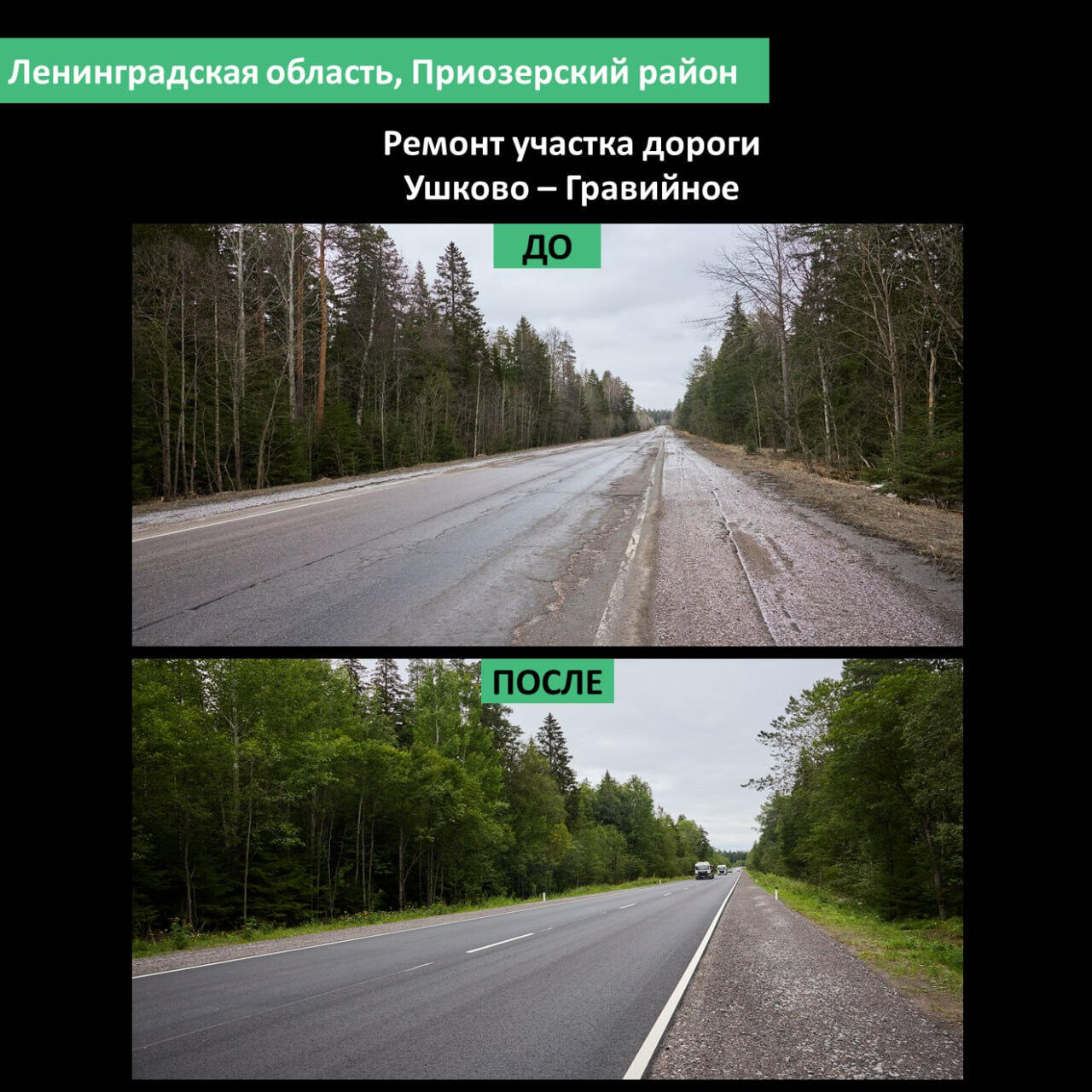 В Приозерском районе отремонтировали дорогу между Сосново и Запорожским