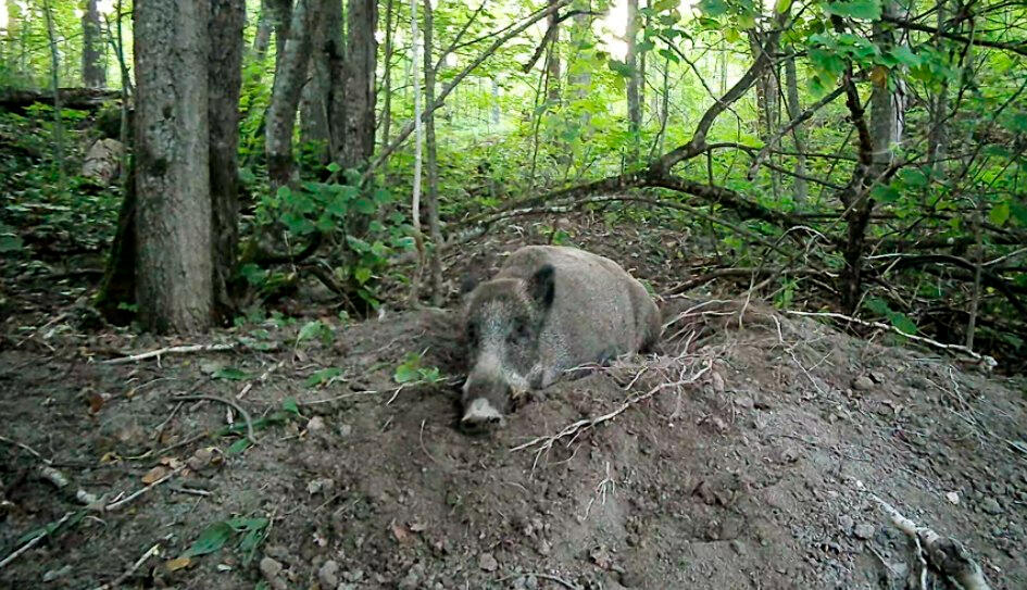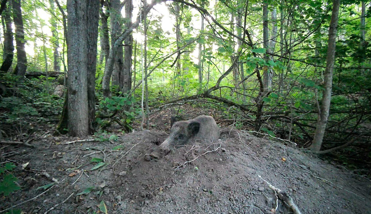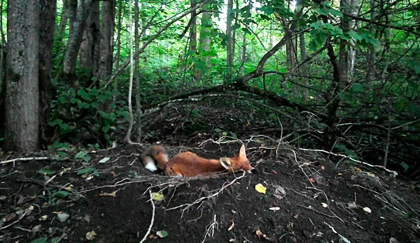 В Приозерском районе отважный лисенок решил отдохнуть в кроватке кабанихи