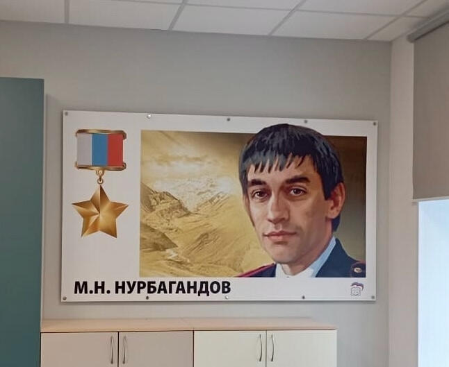 В школе в Лужском районе появился мурал с портретом Героя России Магомеда Нурбагандова