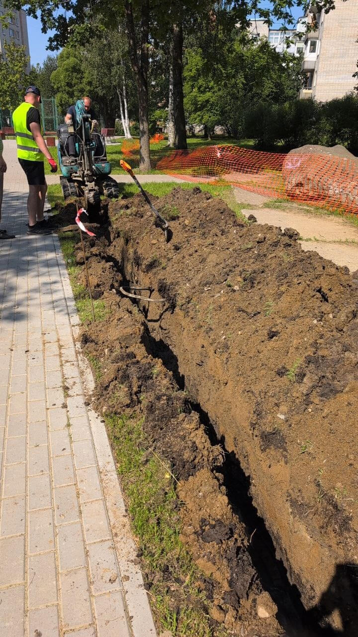 Подрядная организация уже получила все разрешительные документы и приступила к подготовке участка. Первым этапом стала разбивка трасс и выемка грунта под прокладку кабельной линии.