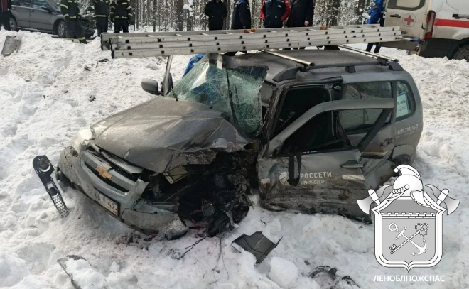 «Нива», принадлежащая компании «Россети Ленэнерго», улетела в кювет.
