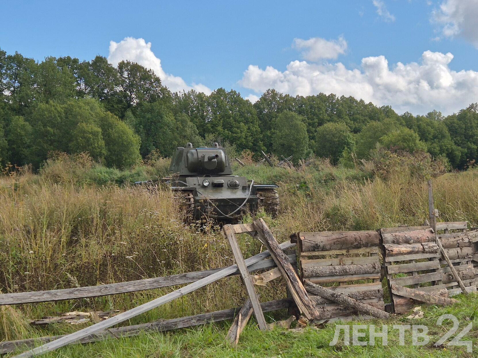 В Танковом парке «Стальной десант» прошло показательное выступление экипажа танка КВ-1 с уничтожением укреплений и немецкой единицы.