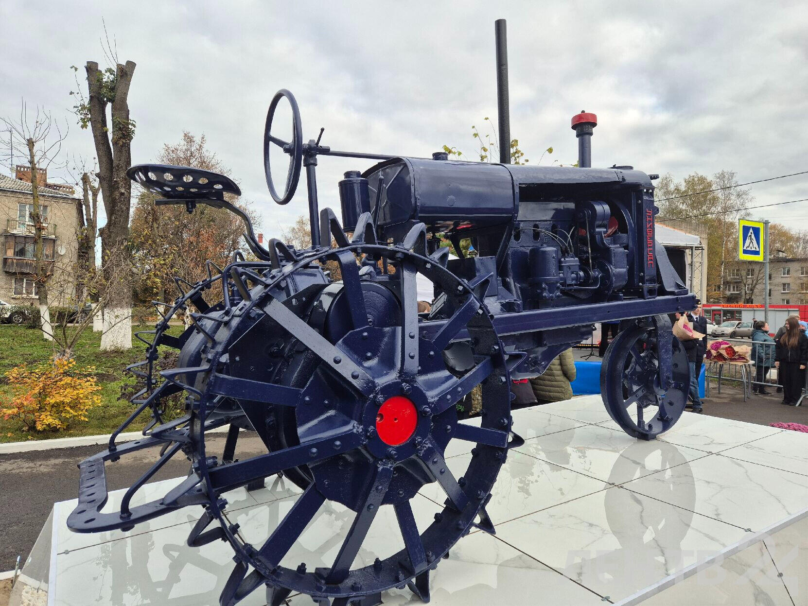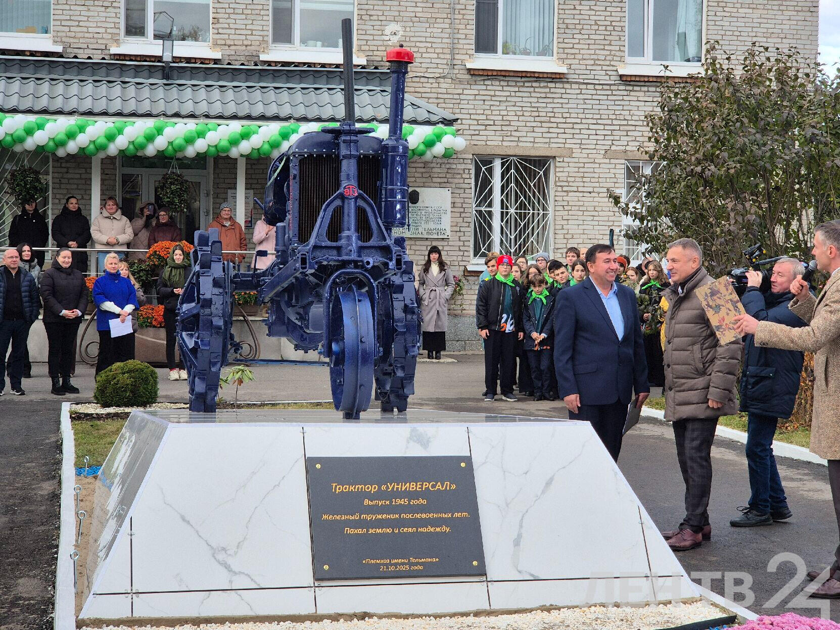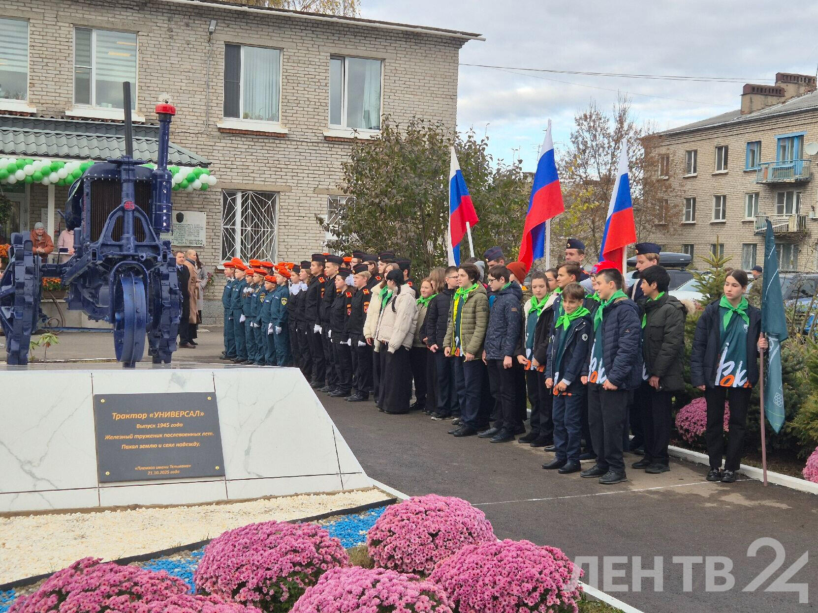 В Тельмана Тосненского района открыли памятник землепашцам, работавшим на полях Ленинградской области в годы Великой Отечественной войны. Его установили у здания администрации племхоза имени Тельмана. Это Трактор Универсал Владимирского тракторного завода 1945 года выпуска, который пахал и сеял поля Тельмана по 53-й год.
