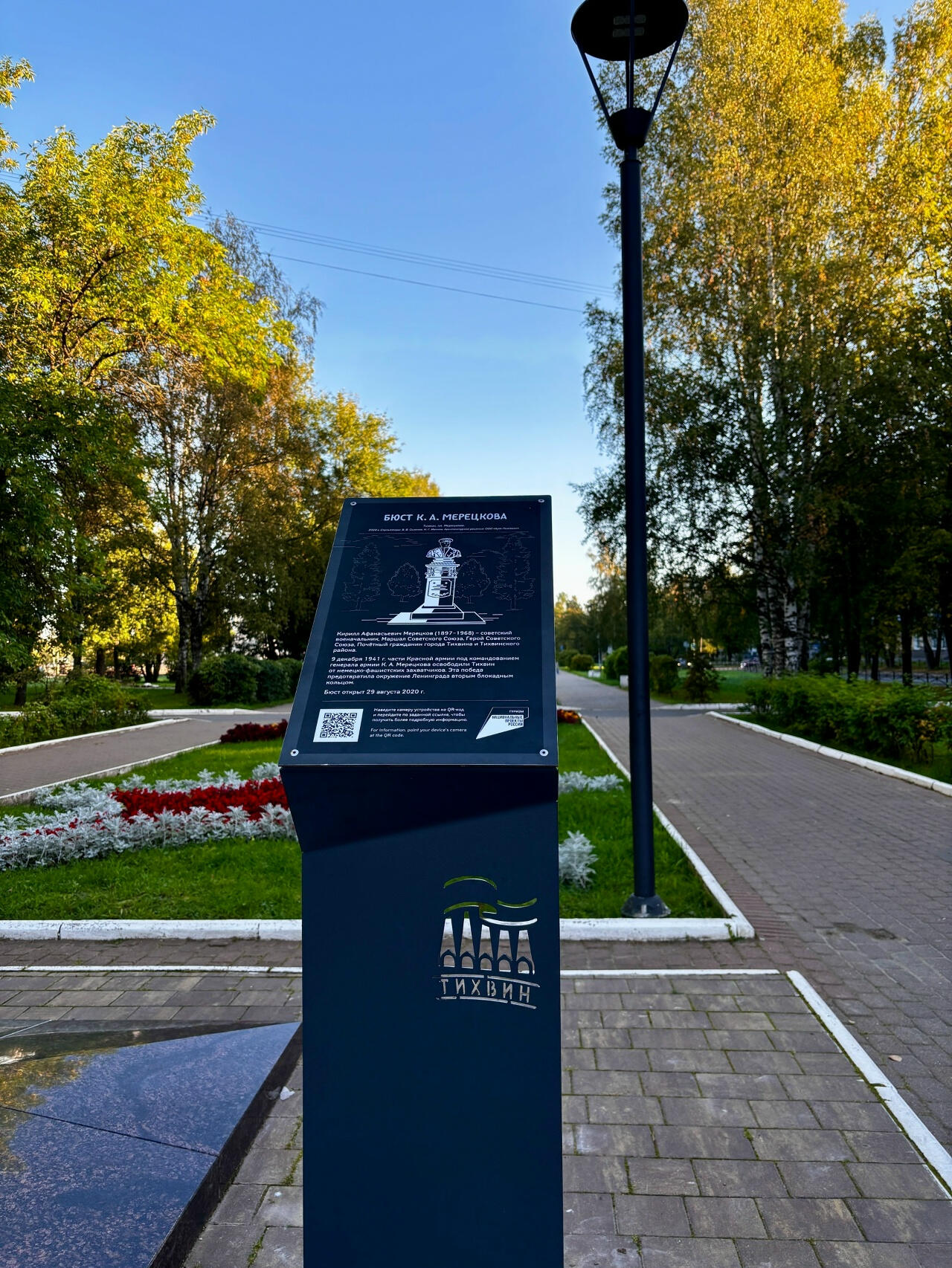 Первые стенды уже установлены у бюста К.А. Мерецкова и стелы «Город воинской славы».