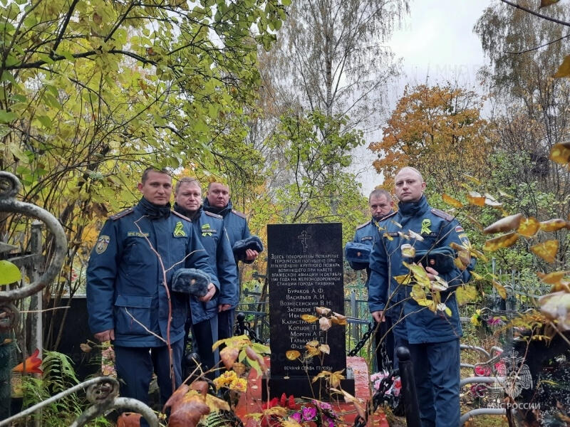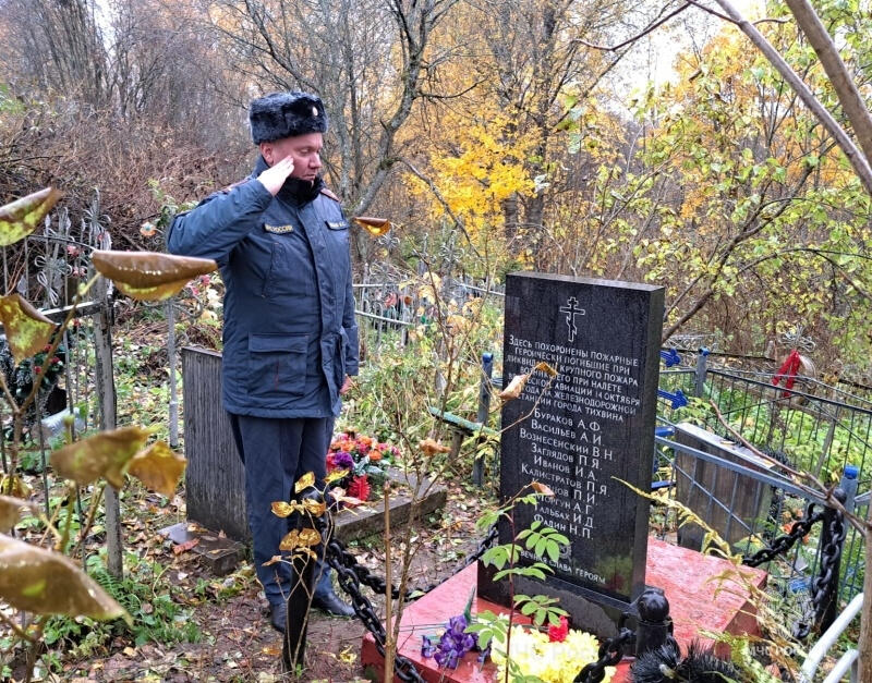 В день памяти сотрудники МЧС навели порядок на месте захоронения погибших пожарных, возложили цветы к мемориальной доске, памятнику детям блокады и братской могиле бойцов Красной Армии. Церемония завершилась минутой молчания в память о жертвах войны.