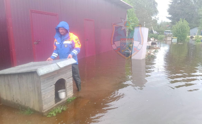 В Сосницах, куда приехал поисково-спасательный отряд города Тосно, женщина попросила старшего смены перенести будку её пса в сухое место. Спасатели не отказали, так что собачий дом был в целости и сохранности переправлен подальше от воды.