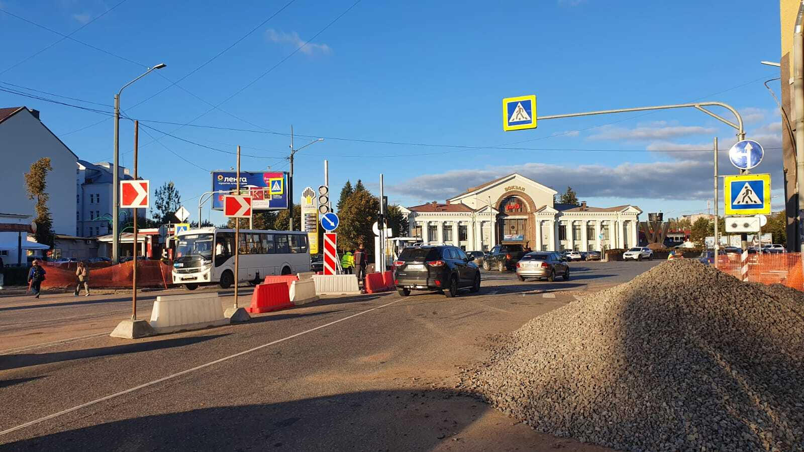 В Выборге на Ленинградском проспекте продолжается обустройство светофорного комплекса