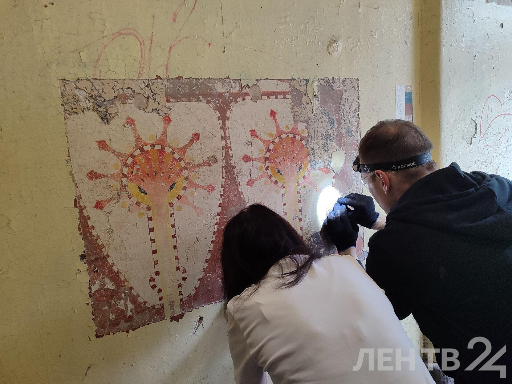 В парадной дома на Ленинградском проспекте в Выборге найдены уникальные росписи начала XX века. На площади метр на метр нарисован орнамент размером с человеческий рост в стиле северный модерн.