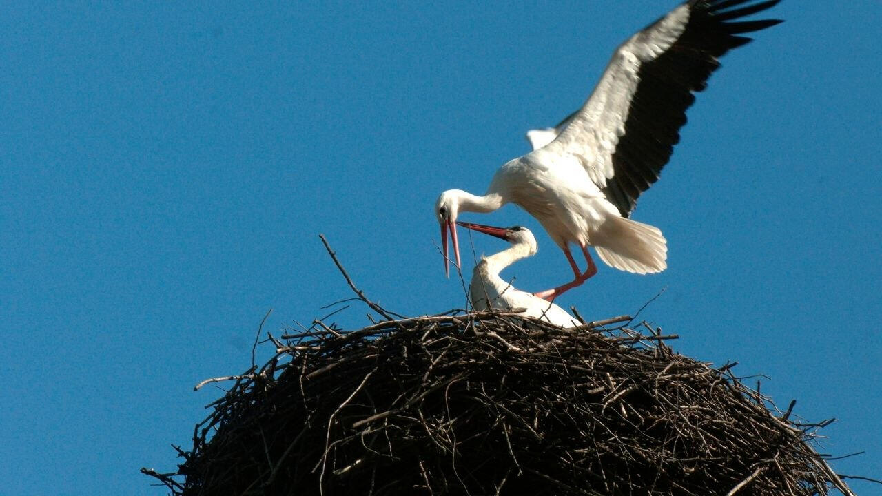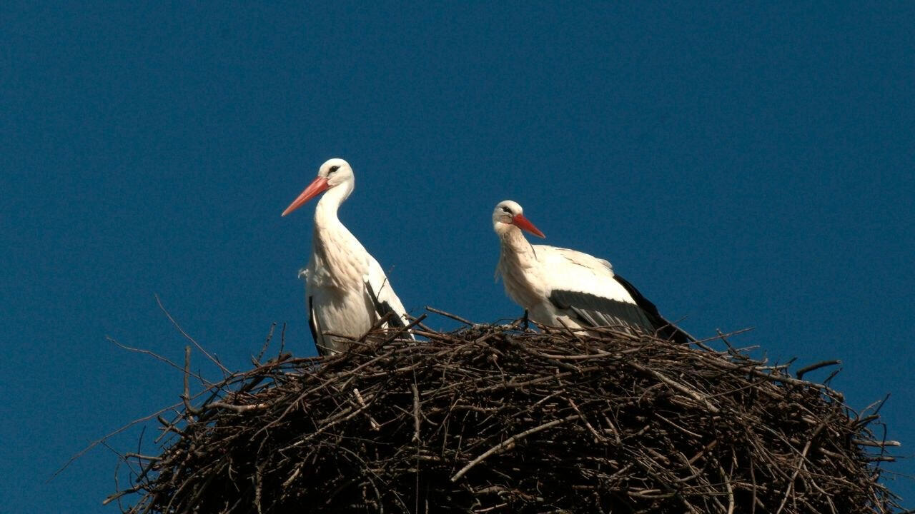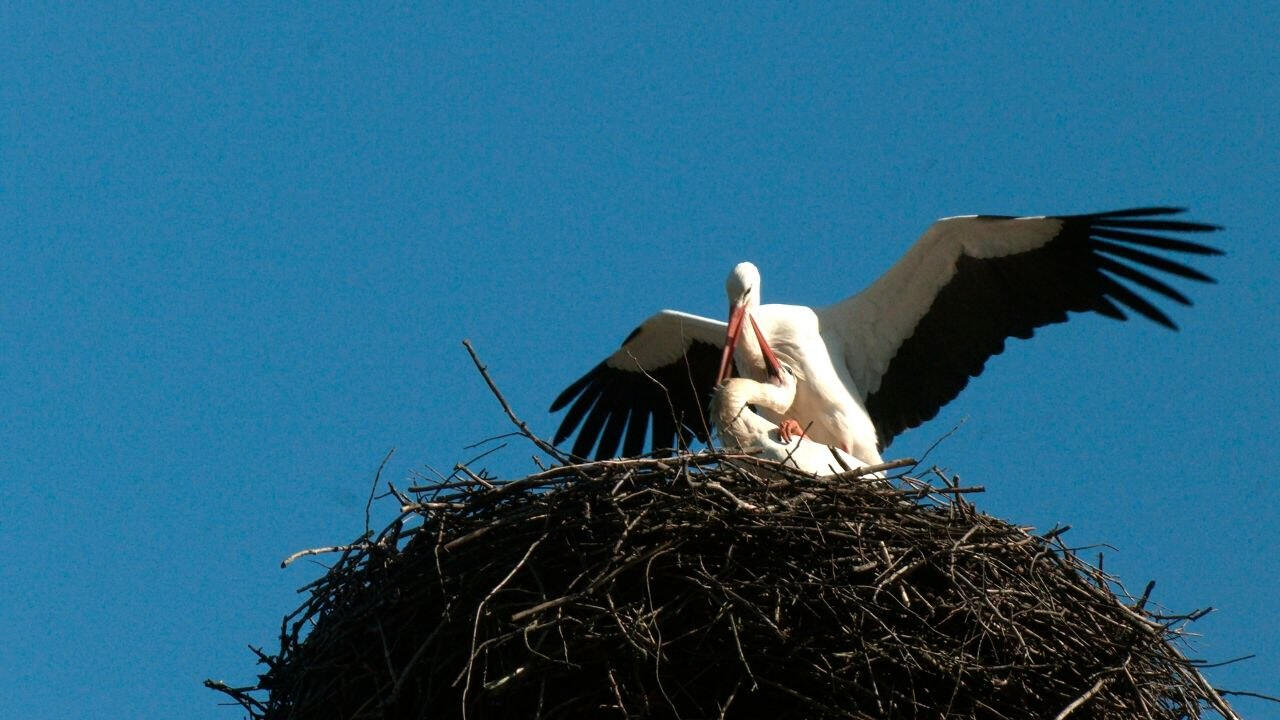 С начала 1970 х белые аисты стали осваивать 47-й регион. Сегодня здесь живет уже более 300 пар и их число растет. Скоро самка отложит 3–4 яйца, а заботливый отец будет помогать ей во всем: согревать кладку, кормить птенцов и учить их жизни.