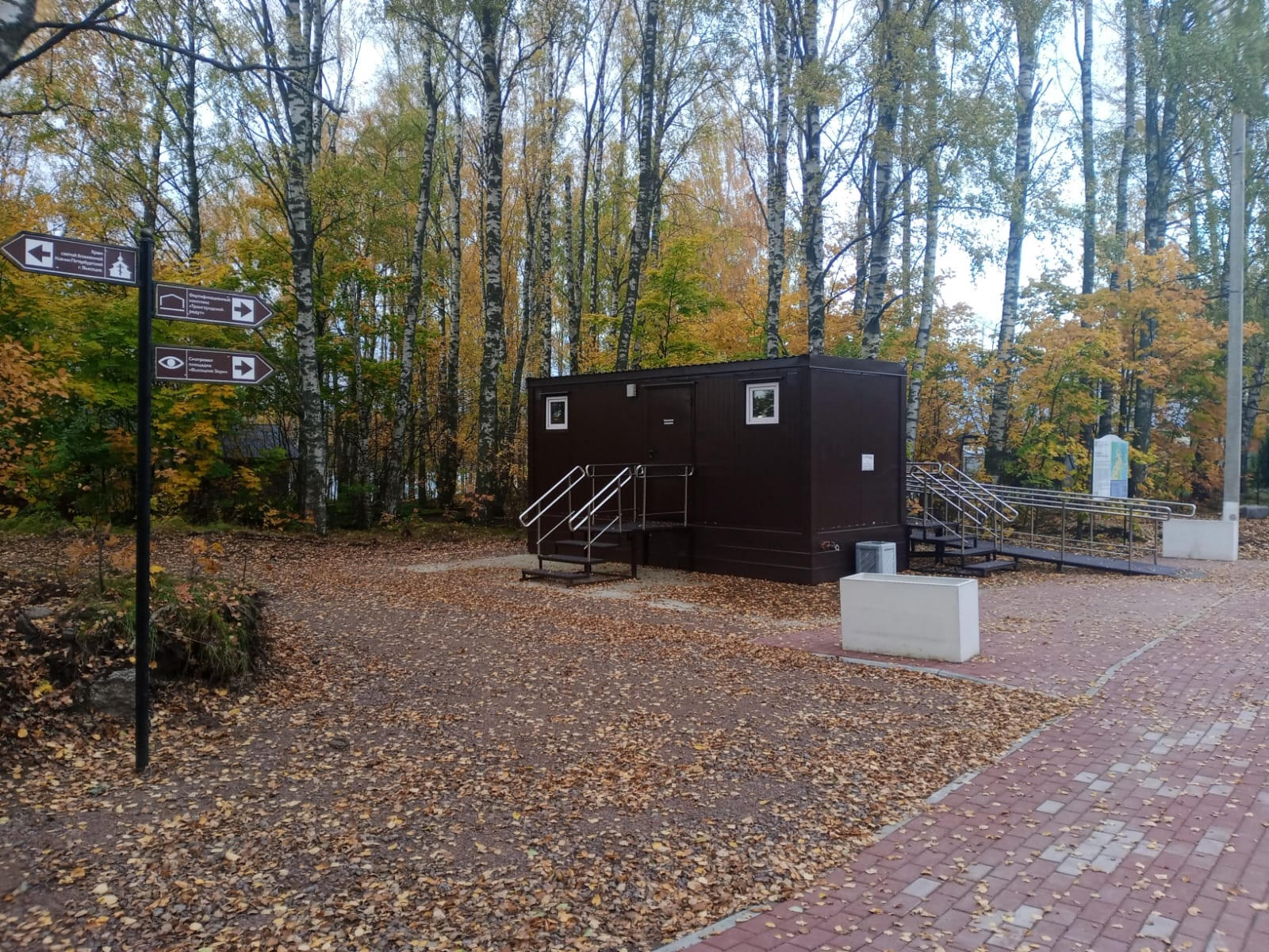 Модуль разделён на мужскую и женскую секции, а также отдельную кабину с пандусом для маломобильных граждан. Сейчас туалет подключают к электросети. При этом поставщик рекомендует приостанавливать работу модуля в зимний период для сохранения его состояния.