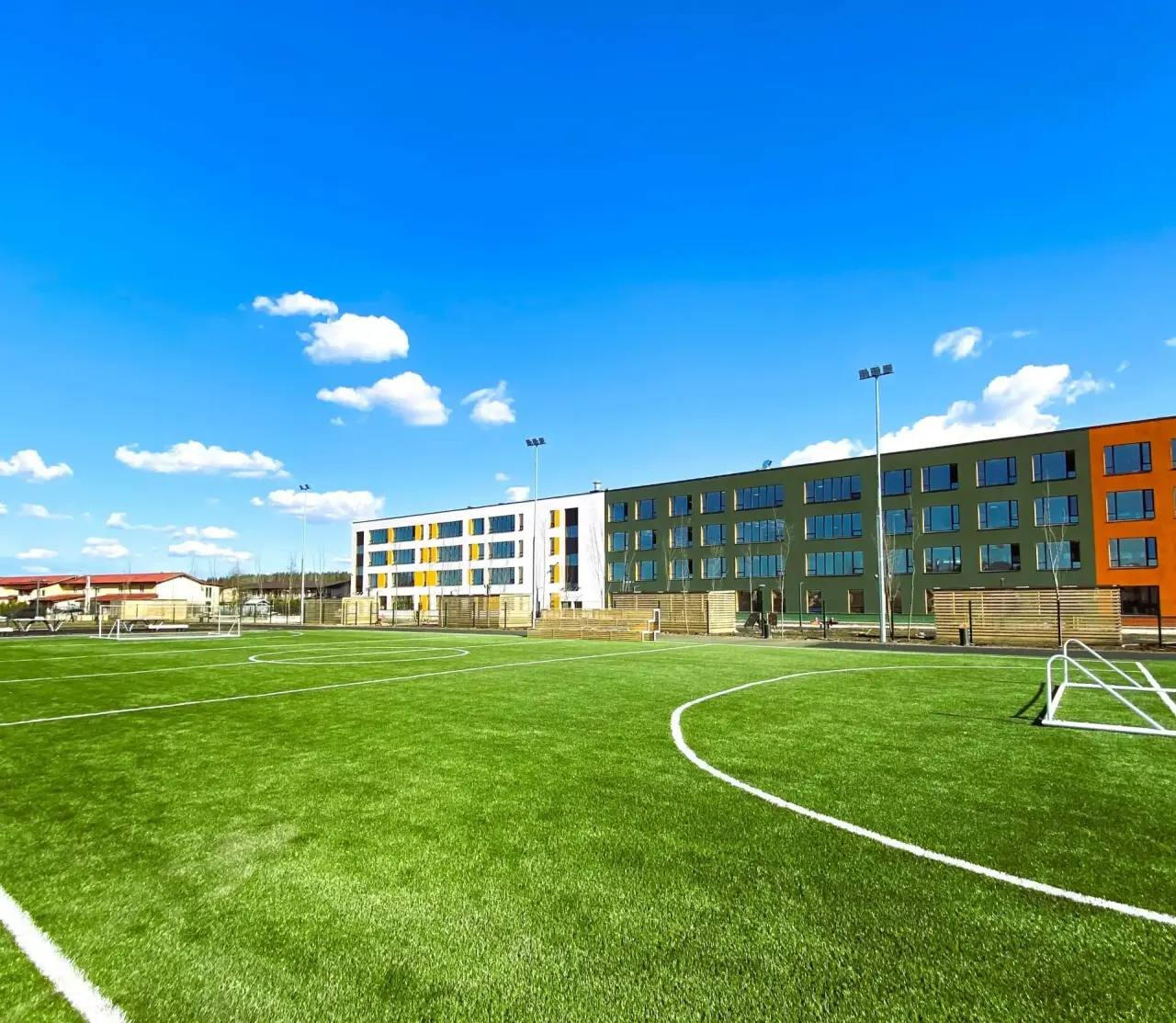 В здании – более 40 классов, несколько спортзалов, актовый зал на 700 мест, библиотека и медиатека. Кроме обычных кабинетов, предусмотрены IT-лаборатория, кабинеты физики и химии, помещения для занятий рисованием и трудом. Для занятий спортом рядом со школой есть стадион с футбольным полем и беговыми дорожками, игровые и спортивные площадки. Не забыли и про зоны отдыха и зелень.