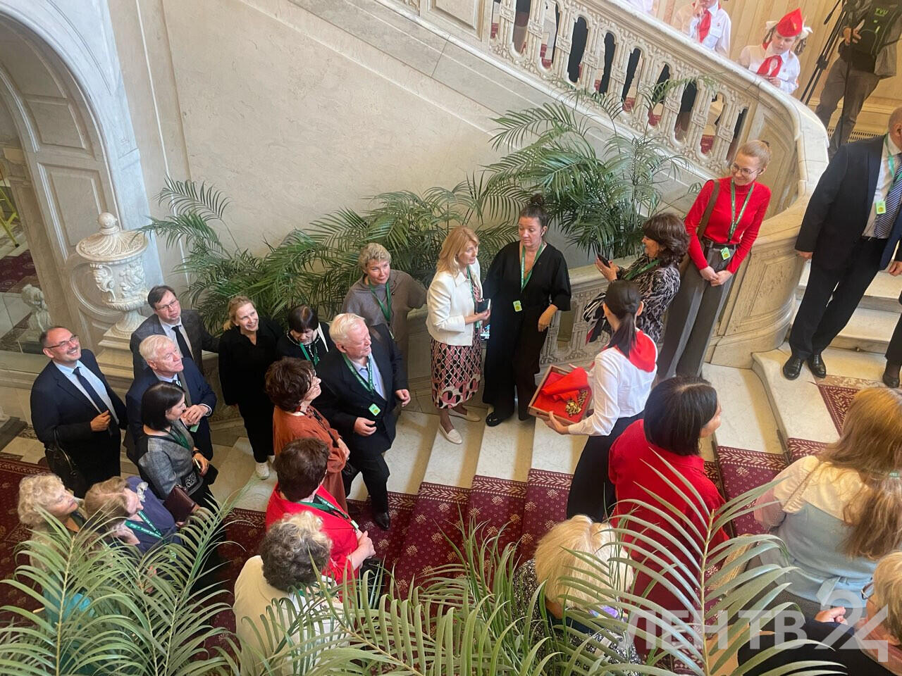 Педагогам рассказали о национализации дворца, эвакуационном госпитале, где спасали жизни солдат и ленинградцев во время блокады, и о том, как реставрировали дворец после войны, и даже приоткрыли завесу тайной комнаты, где были найдены письма Александра Пушкина, адресованные родственнице Юсуповых.