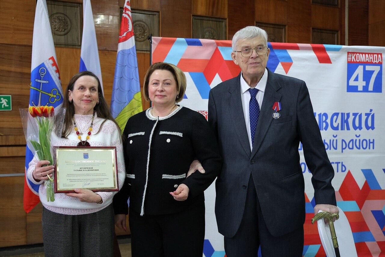 Награду юбиляру вручила глава администрации Сланцевского района Марина Чистова. В церемонии приняли участие председатель совета депутатов Владимир Богданов, депутаты руководители районных учреждений, представители общественных организаций, ветераны и жители района.