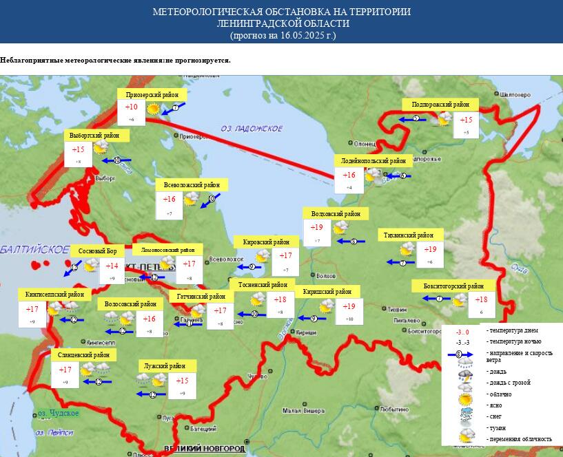 В эту пятницу, 16 мая, в Ленинградской области будет облачно с прояснениями. Ближайшей ночью могут пройти кратковременные дожди, а вот завтра днем небольшое осадки стоит ждать лишь на юге региона, на севере же будет сухо.