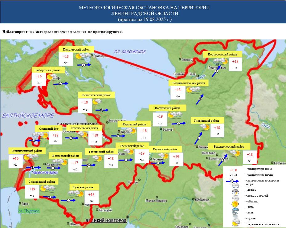 Ветрено и до +22: прогноз погоды в Ленобласти на 19 августа