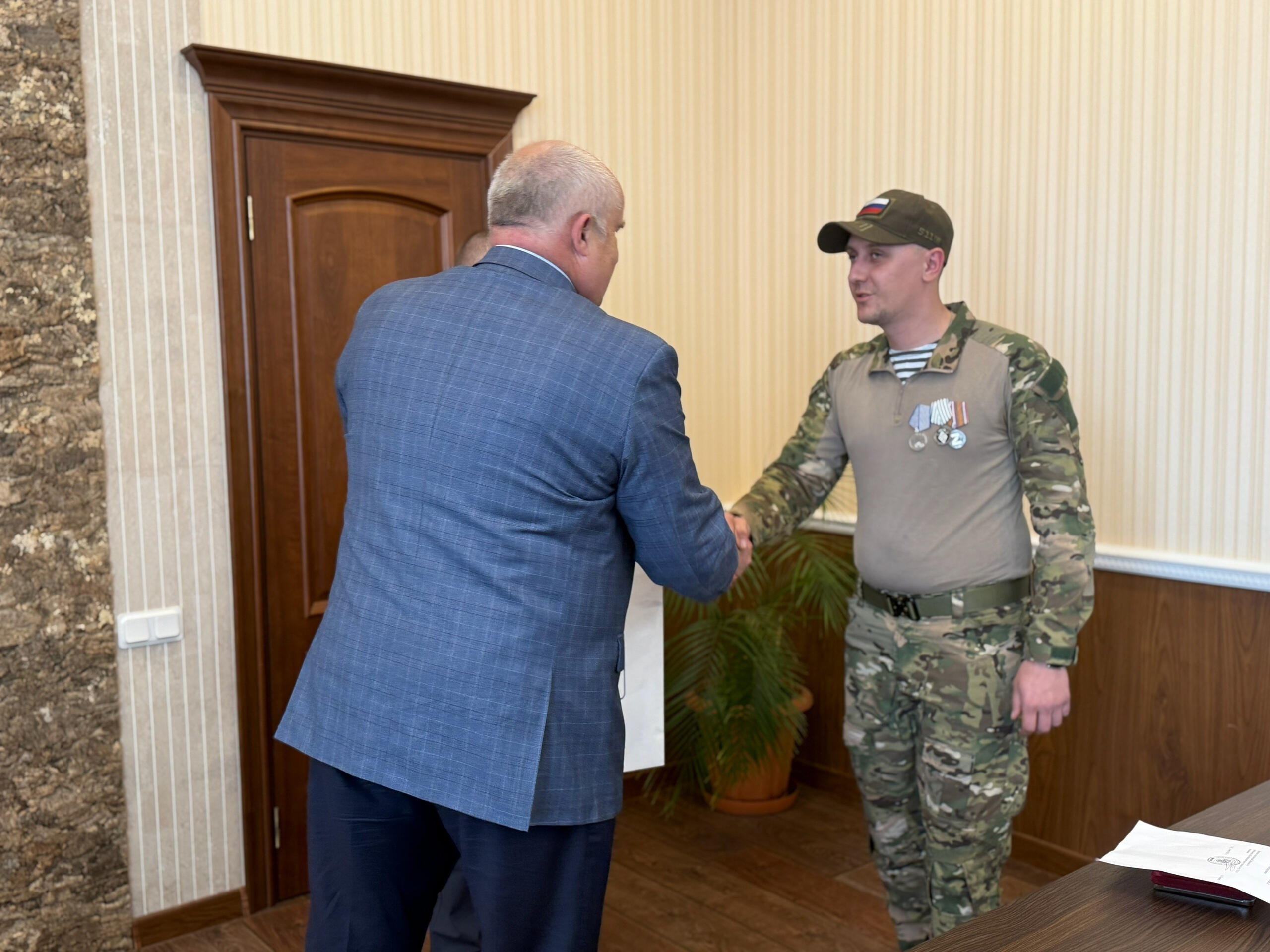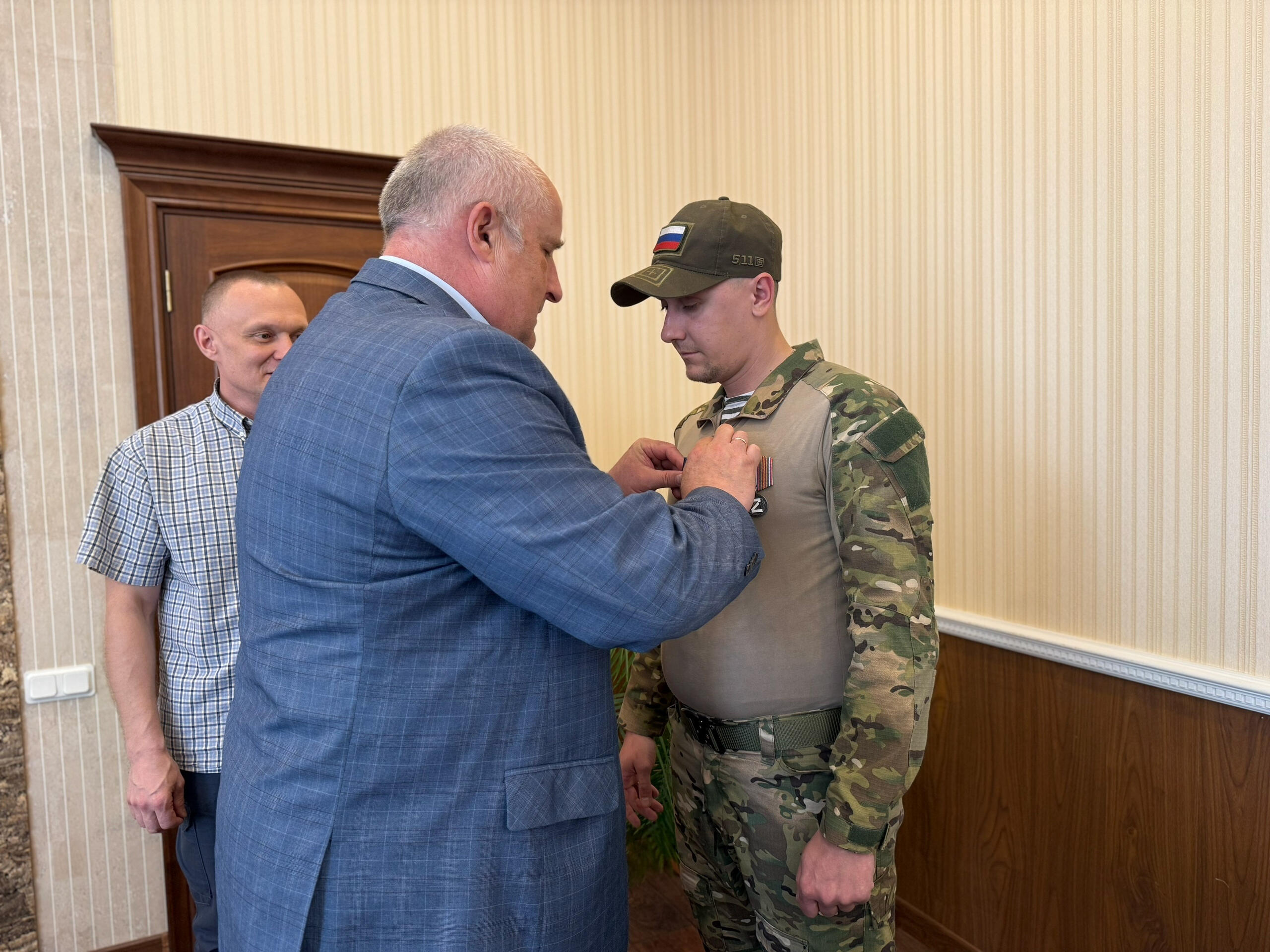 Сегодня в районной администрации состоялась торжественная церемония награждения бойца. Медаль ему вручил глава администрации Всеволожского района Андрей Воропаев.