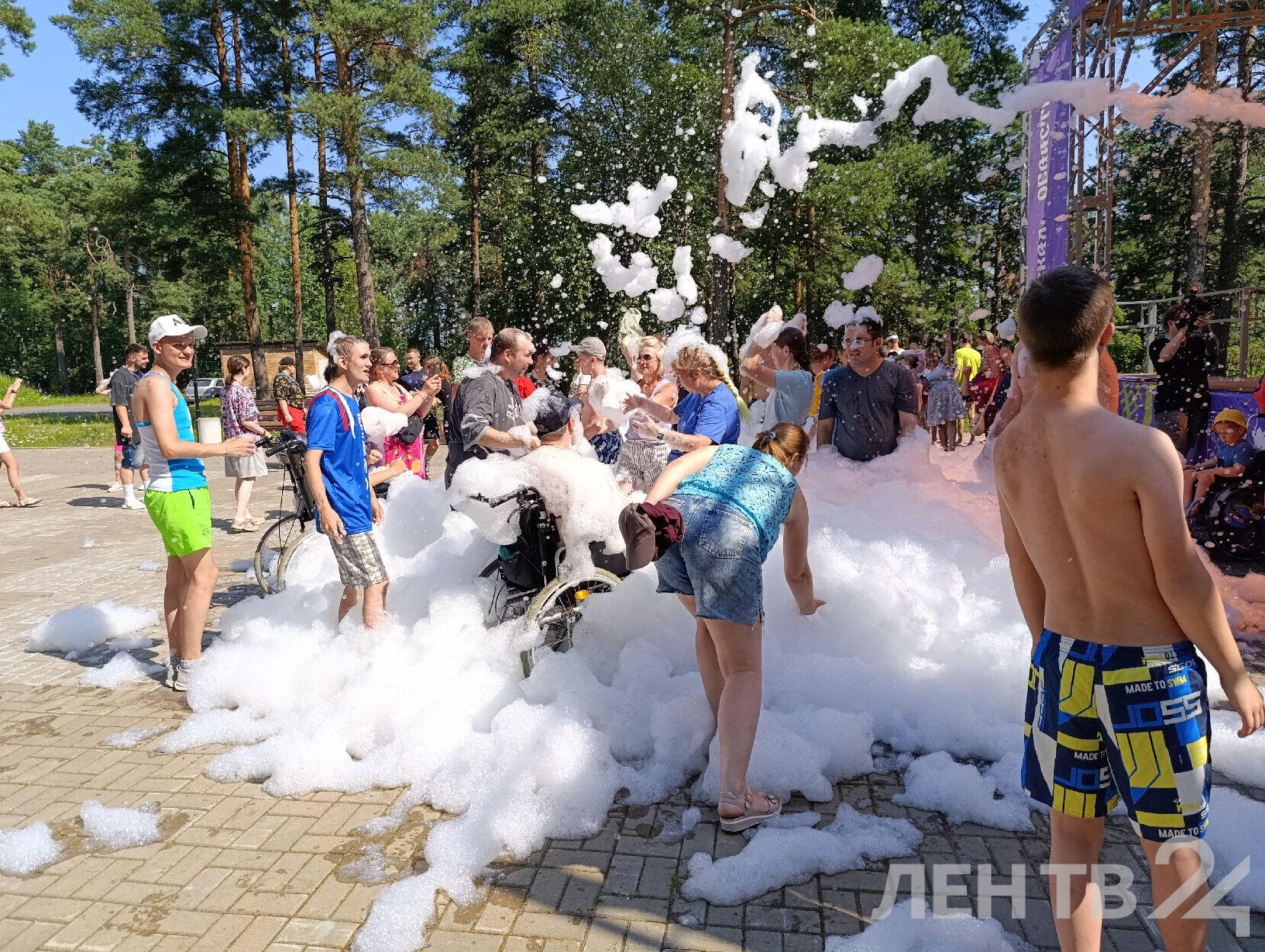 Во второй день прошла пенная вечеринка и игра по станциям. Слёт проводят при содействии «Мультицентра». Мероприятие приурочено к году Команды Победы в Ленинградской области.