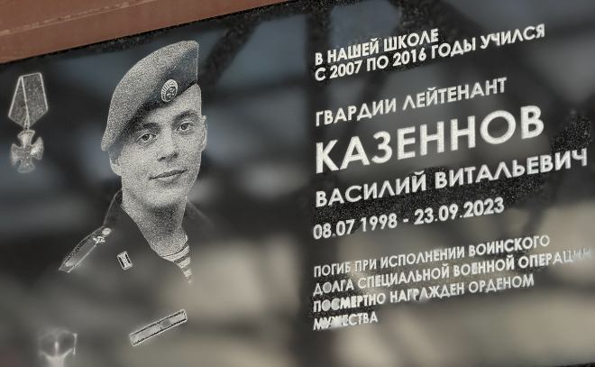 На фасаде здания Всеволожской средней школы №3 появилась мемориальная доска в честь выпускника Василия Казеннова. Он пал смертью храбрых в ходе специальной военной операции, рассказали в администрации Всеволожского района. Защитник Родины посмертно награжден орденом Мужества.