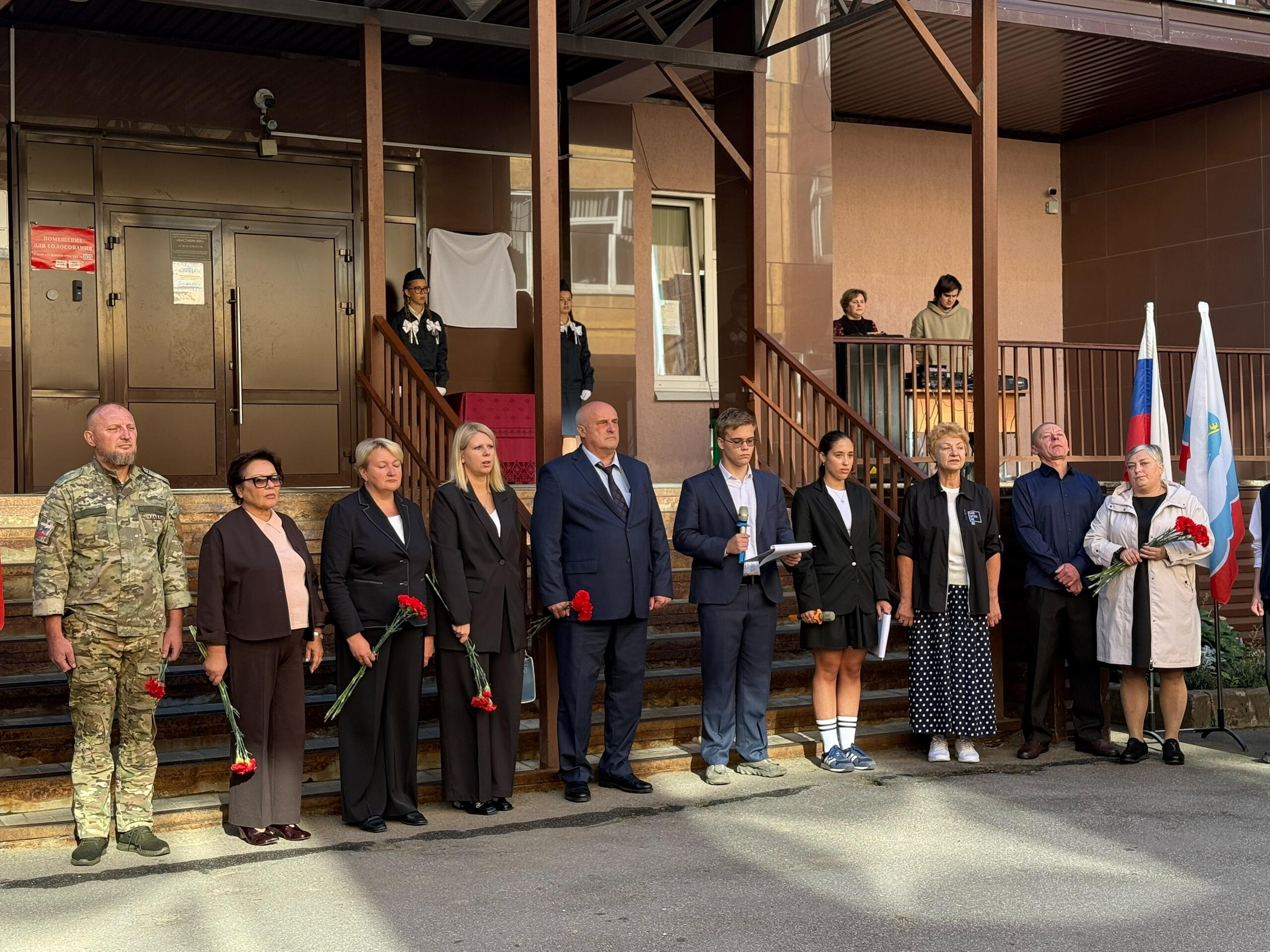 В церемонии открытия мемориала приняли участие родные героя, учителя и ученики школы, а также глава районной администрации Андрей Воропаев и руководитель комитета по образованию Ирина Федоренко.